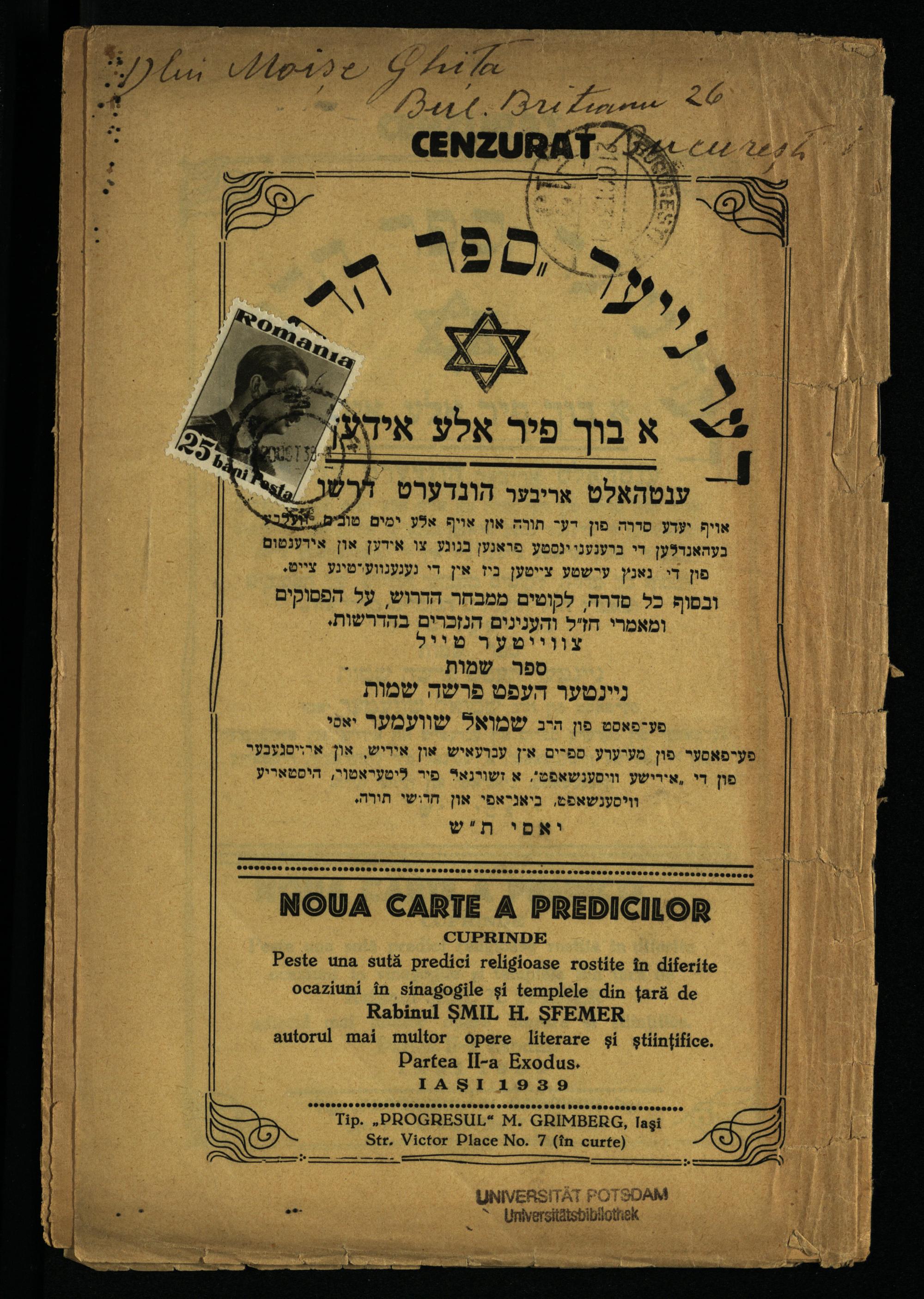 Hefṭ 9 = 2, [1] (1939) Sefer Shemot : parashah ShemotHefṭ 9 = 2, [1] (1939) ספר שמות : פרשה שמות