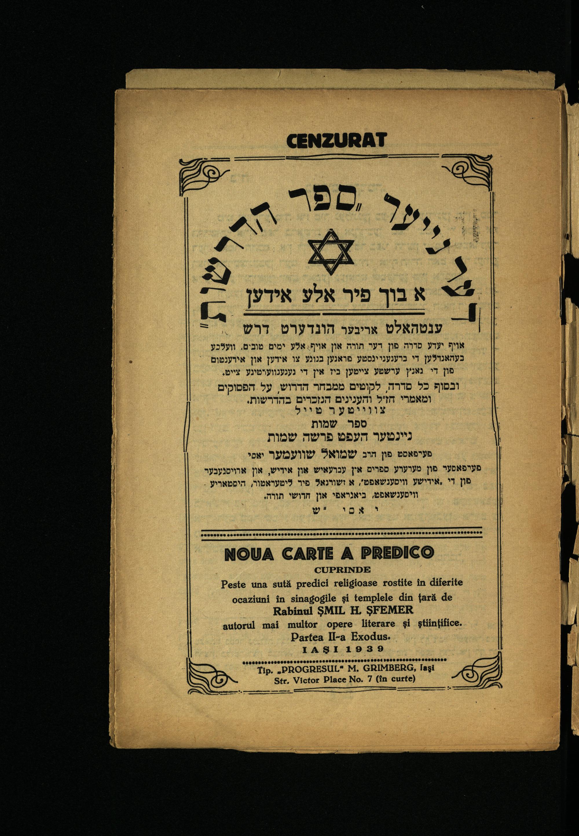 Hefṭ 9 = 2, [1] (1939) Sefer Shemot : parashah ShemotHefṭ 9 = 2, [1] (1939) ספר שמות : פרשה שמות