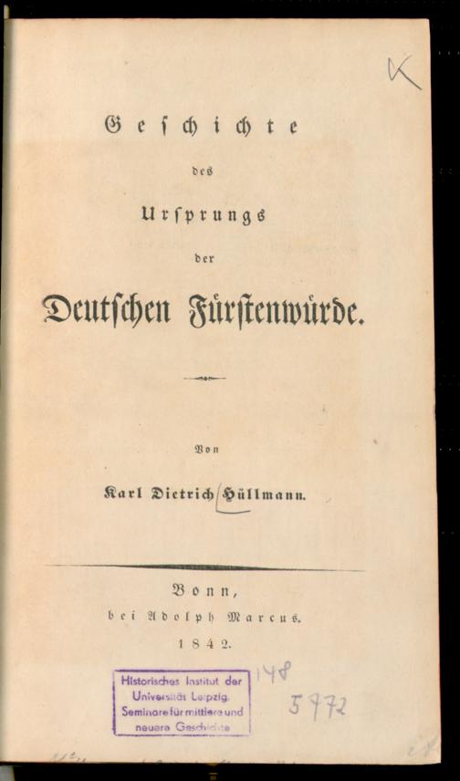 Geschichte des Ursprungs der Deutschen Fürstenwürde / Von Karl Dietrich Hüllmann