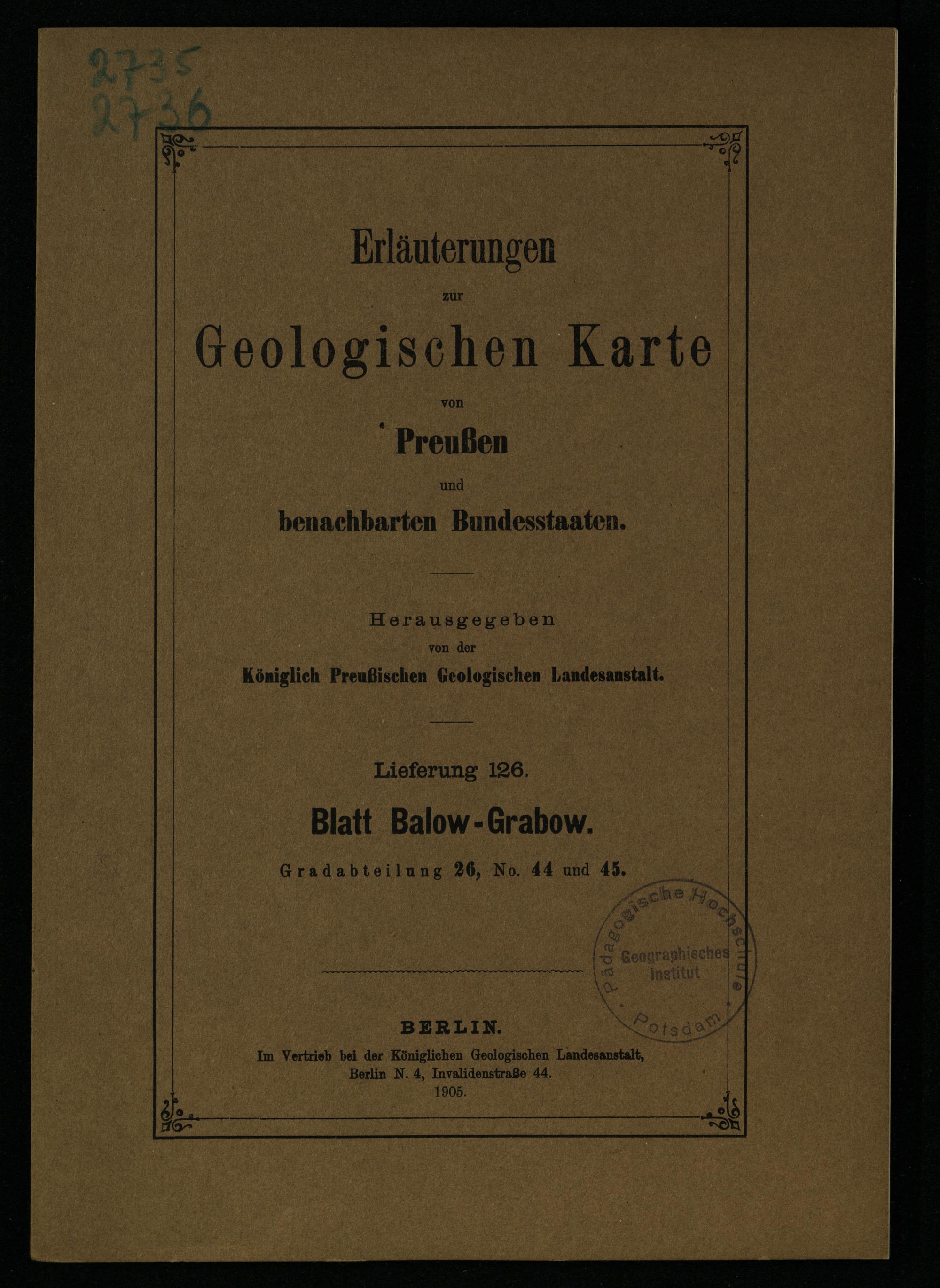 Grad-Abtheilung 26, Blatt 45 und 44 [Neue Nr. 2735, 2736] (1905) Balow, Grabow / geognostisch und agronomisch bearbeitet durch W. Weissermel 1900