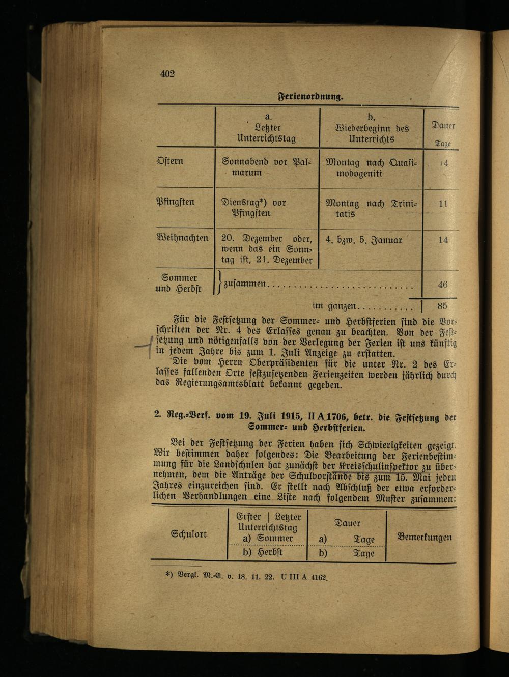 VI. Schulferien, Schulfeiern, Aussetzung des Unterrichts