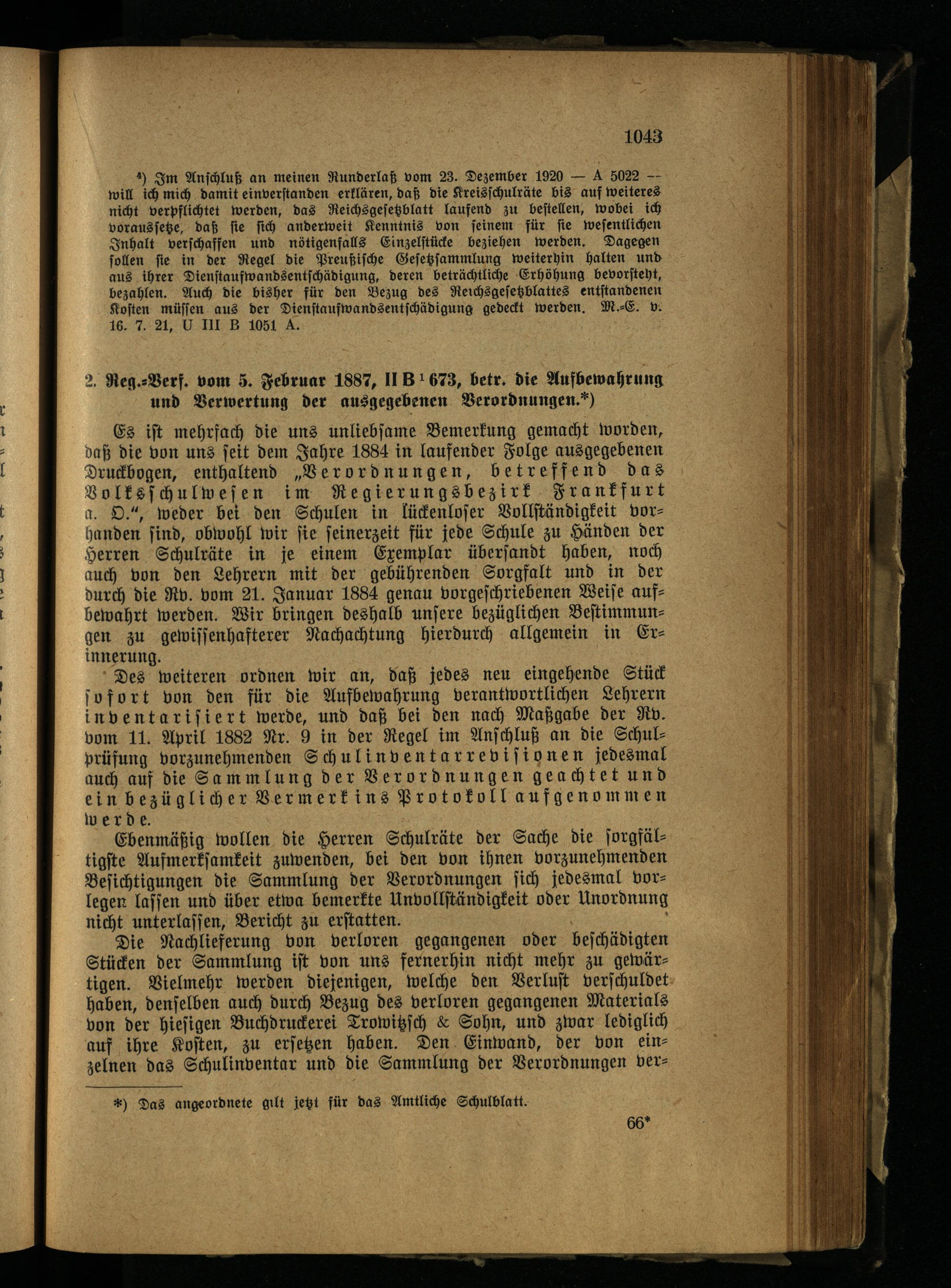 Verordnungen über das Volksschulwesen im Regierungsbezirk Frankfurt/Oder