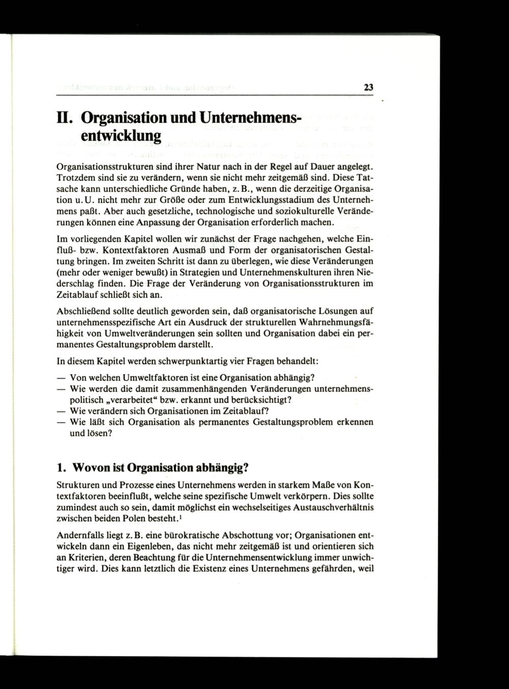 II. Organisation und Unternehmensentwicklung