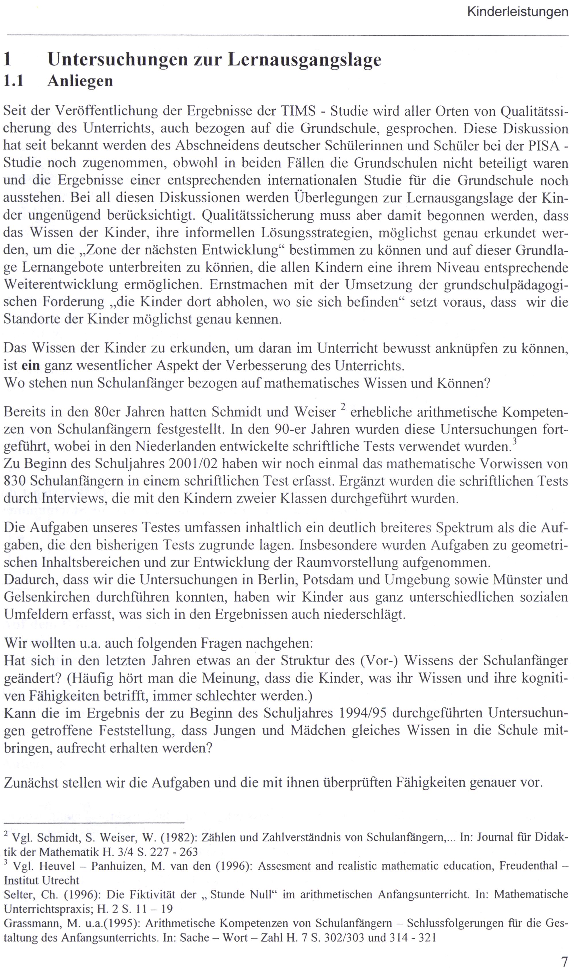 Teil 1 (2002) Kinderleistungen - Lehrererwartungen