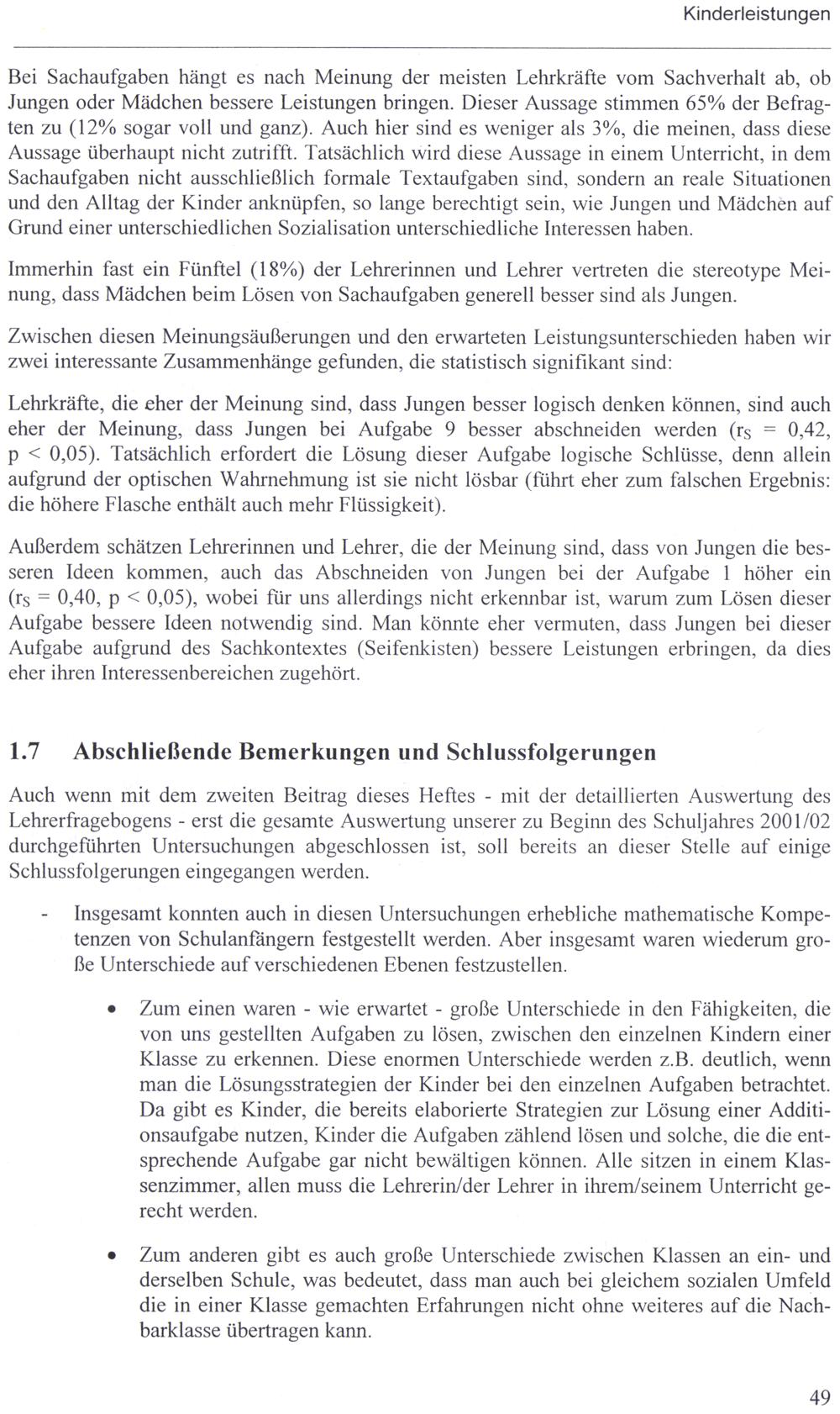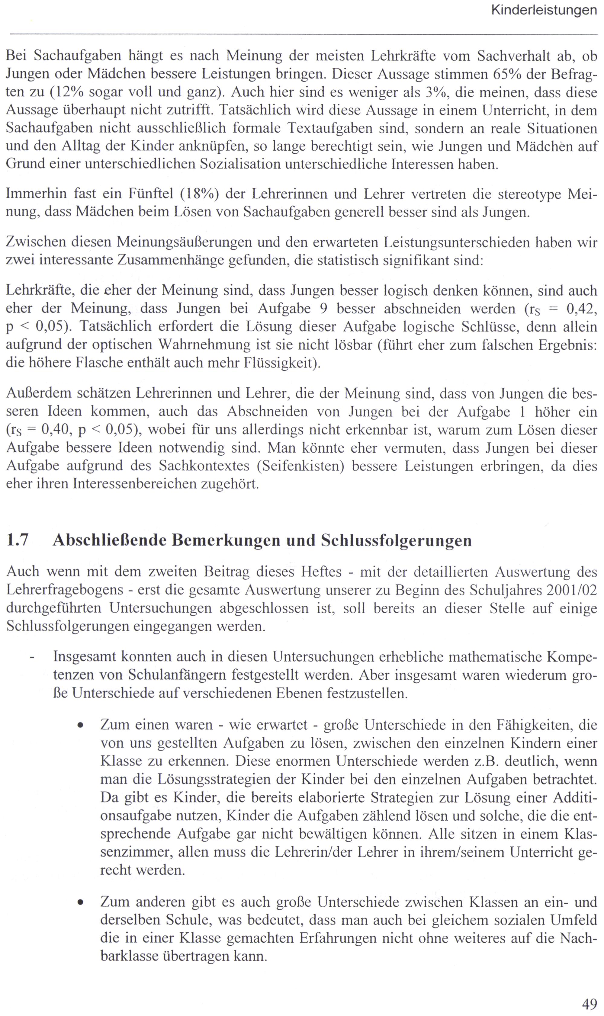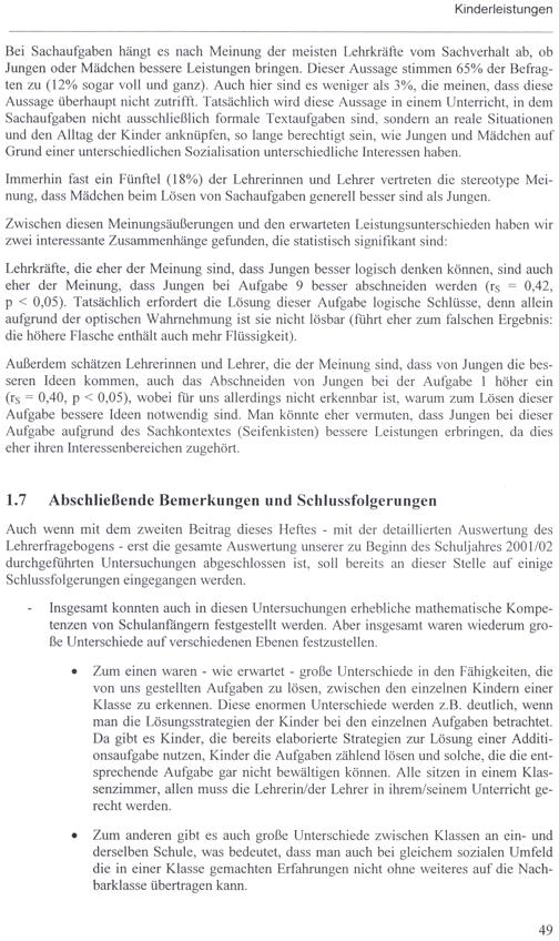 Teil 1 (2002) Kinderleistungen - Lehrererwartungen
