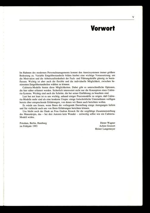 Cafeteria-Modelle : Möglichkeiten der Individualisierung und Flexibilisierung von Entgeltsystemen für Führungskräfte / Dieter Wagner ; Achim Grawert ; Heiner Langemeyer