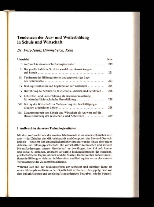 Tendenzen der Aus- und Weiterbildung in Schule und Wirtschaft (Dr. Fritz-Heinz Himmelreich,...