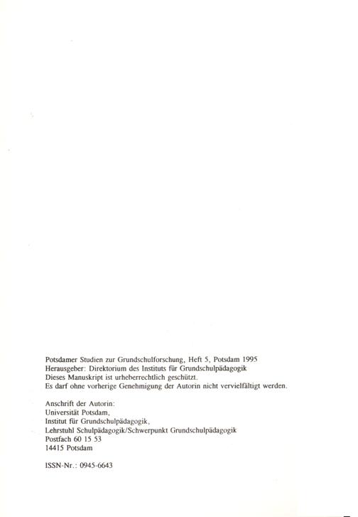 Untersuchungen zum Stand der Entwicklung von Selbstkonzepten bei Schülern der Primarstufe (Klasse 4) : eine Erkundungsstudie / Anneliese Felger-Pärsch. [Hrsg.: Direktorium des Instituts für Grundschulpädagogik]