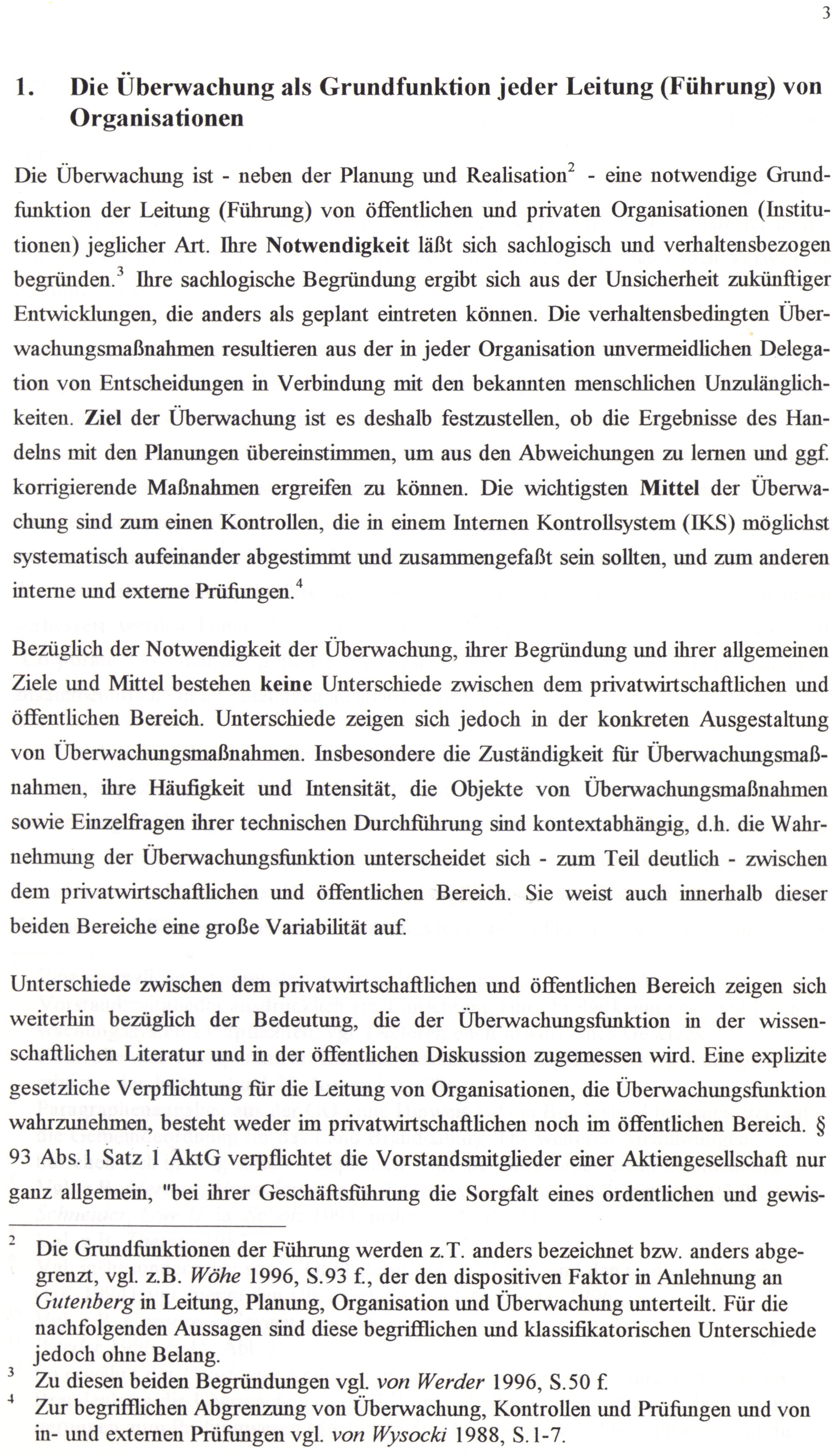 1. Die Überwachung als Grundfunktion jeder Leitung (Führung) von Organisationen