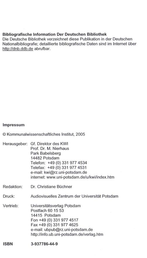 10 Jahre Kommunalwissenschaftliches Institut : Tätigkeitsbericht 1994 - 2004 / Hrsg.von Michael Nierhaus