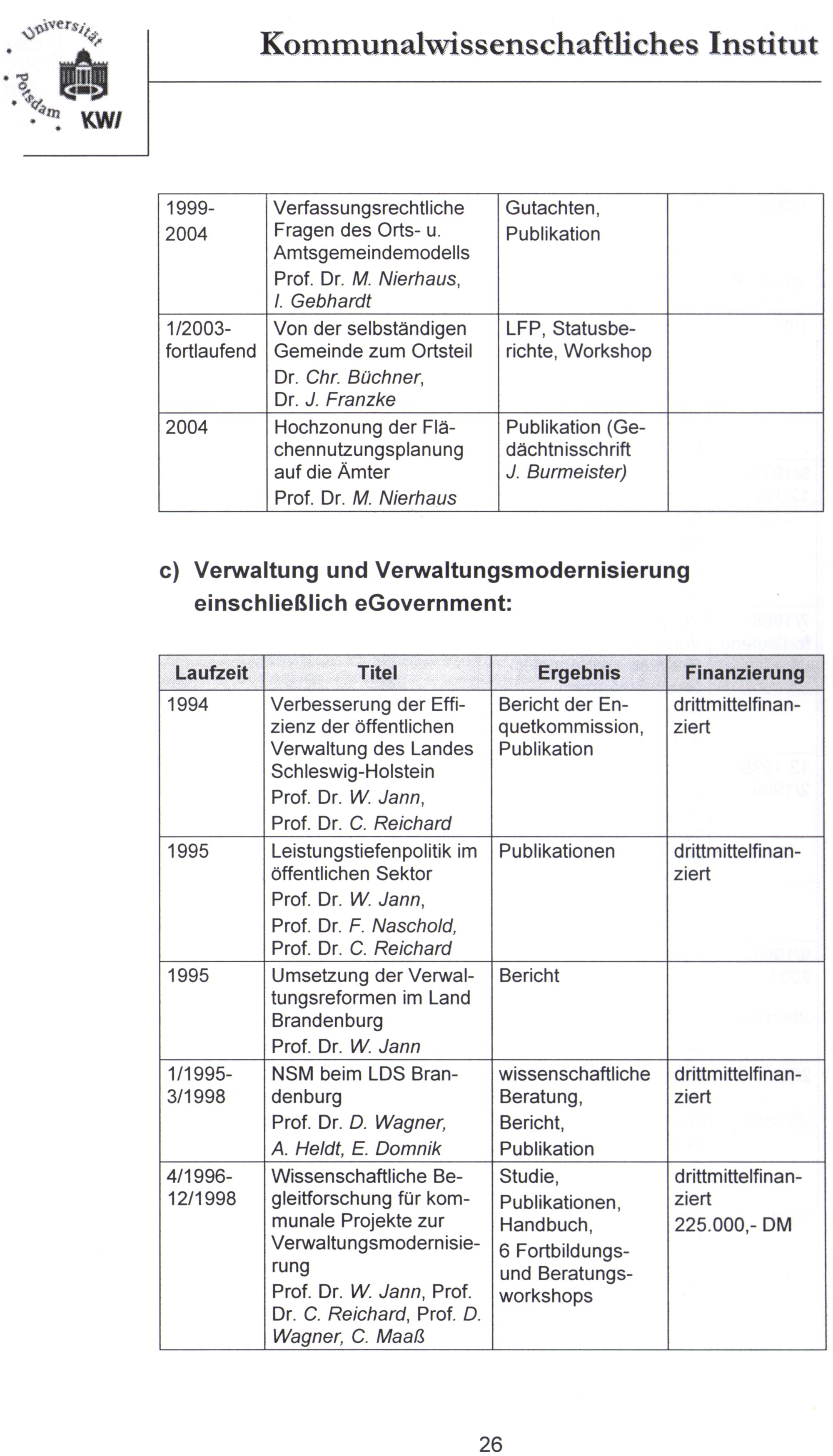 10 Jahre Kommunalwissenschaftliches Institut : Tätigkeitsbericht 1994 - 2004 / Hrsg.von Michael Nierhaus