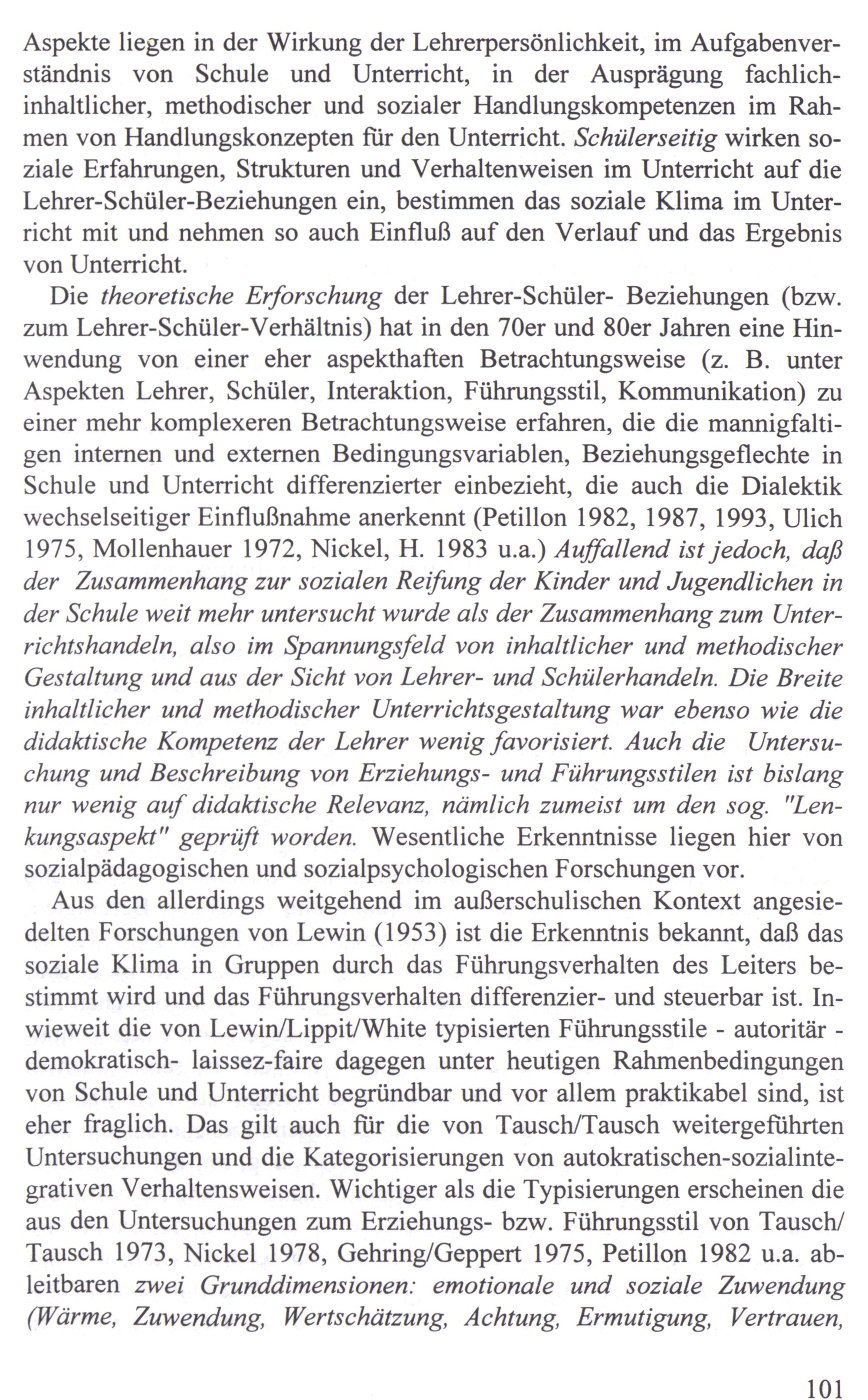 Leutert, Hans, Lehrer-Schüler-Beziehungen und Unterrichtshandeln in den Klassen 5 und 6 - alles bekannt und erforscht?