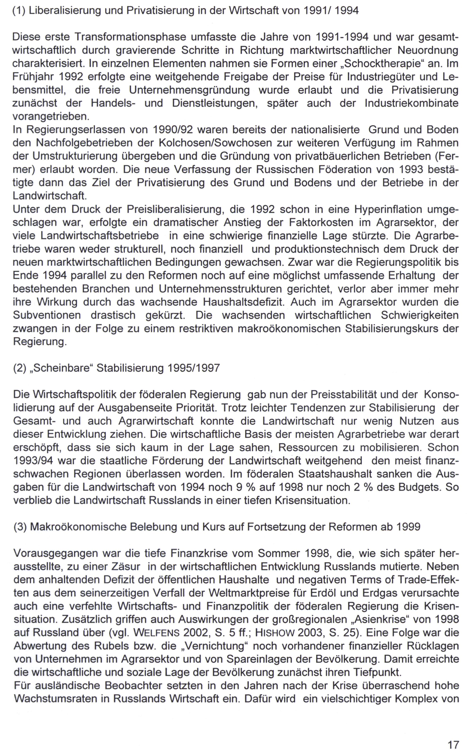 2. Polititsche und makroökonomische Rahmenbedingungen für die Landwirtschaft Russlands...