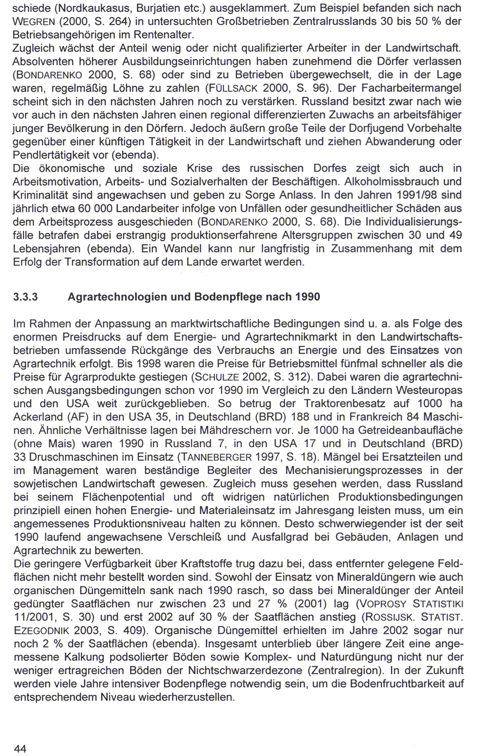 3. Die Landwirtschaft Russlands in der Transformation