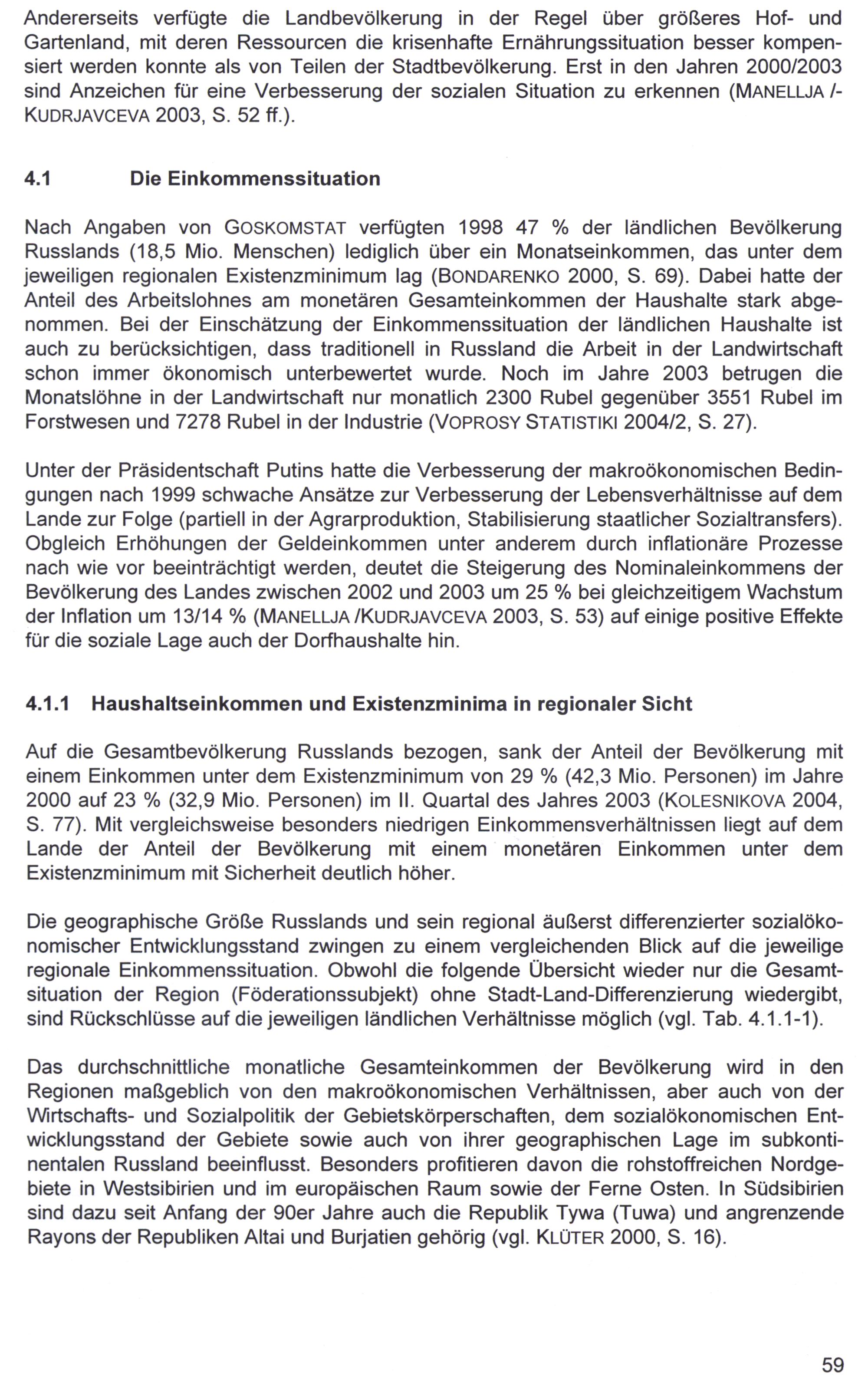 4. Zur sozialen Lage ländlicher Haushalte in Russland