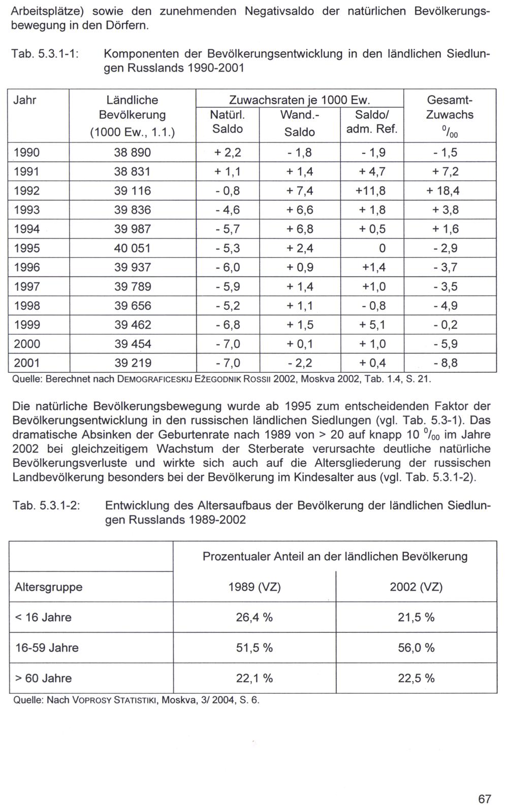 5.3. Demographische Entwicklungsprozesse in den ländlichen Siedlungen