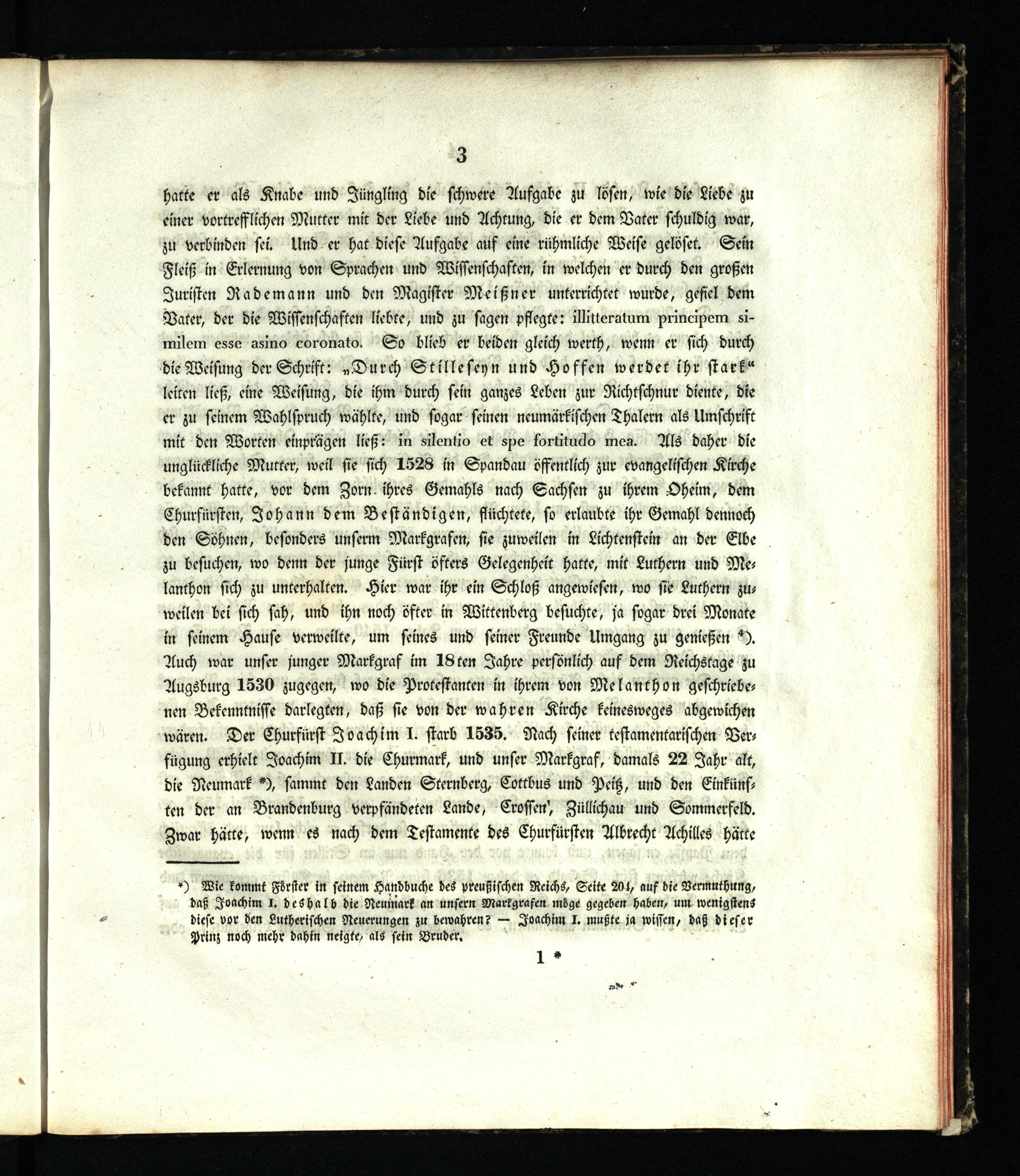 Lebensgeschichte des Markgrafen Johannes von Brandenburg, Landesfürsten in der Neumark zu Küstrin : Gelegenheitsschrift bei der dritten Secularfeier der Kirchenreformation der Stadt Züllichau ; Nebst dem Bilde des Markgrafen und einem sich darauf beziehenden geneaologischen Weiheblatte auf die Vermählung des Prinzen Carl von Preussen, Königliche Hoheit, mit der Prinzessin Marie von Sachsen-Weimar, Königliche Hoheit / von Wilhelm Gabriel Wegener, Königlichem Superintendenten und Oberpfarrer