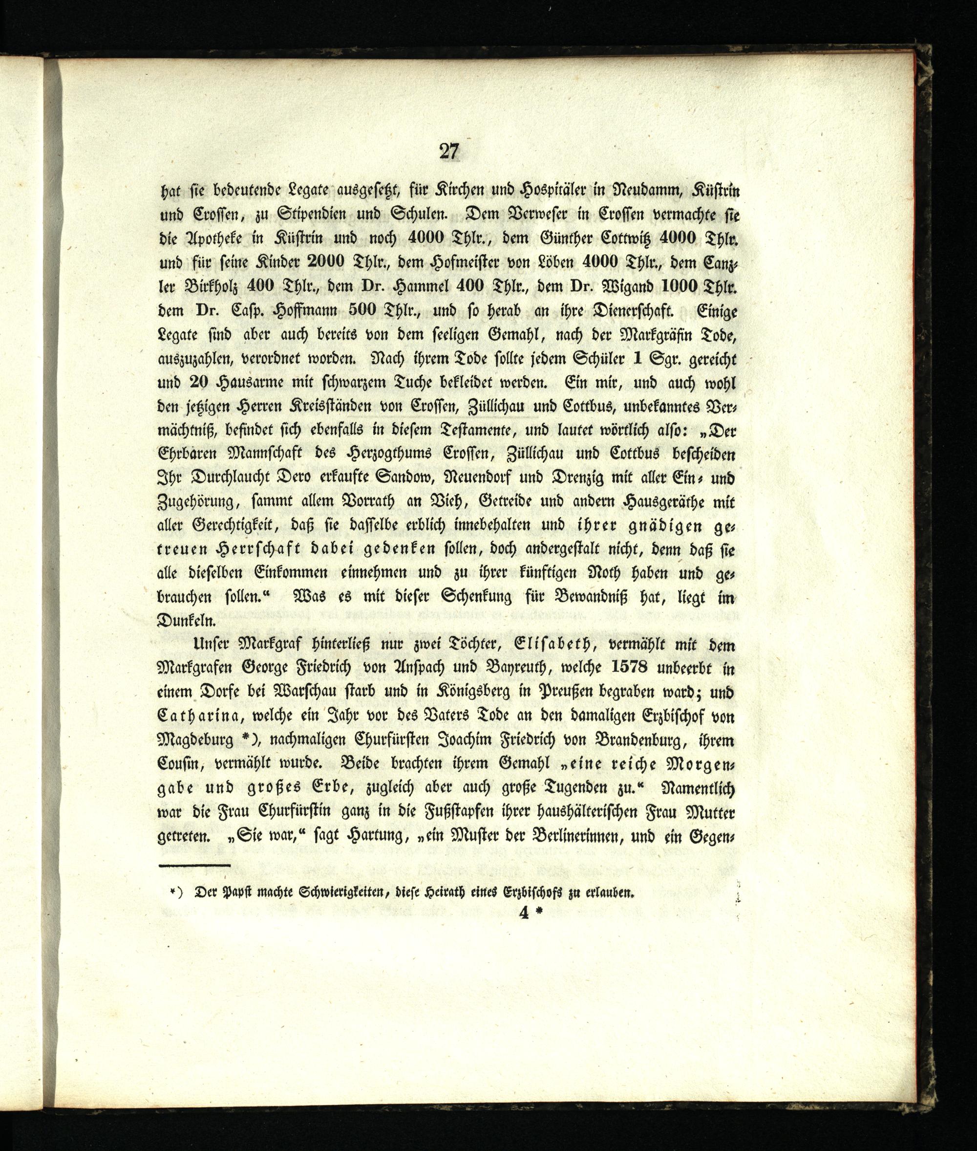 Lebensgeschichte des Markgrafen Johannes von Brandenburg, Landesfürsten in der Neumark zu Küstrin : Gelegenheitsschrift bei der dritten Secularfeier der Kirchenreformation der Stadt Züllichau ; Nebst dem Bilde des Markgrafen und einem sich darauf beziehenden geneaologischen Weiheblatte auf die Vermählung des Prinzen Carl von Preussen, Königliche Hoheit, mit der Prinzessin Marie von Sachsen-Weimar, Königliche Hoheit / von Wilhelm Gabriel Wegener, Königlichem Superintendenten und Oberpfarrer