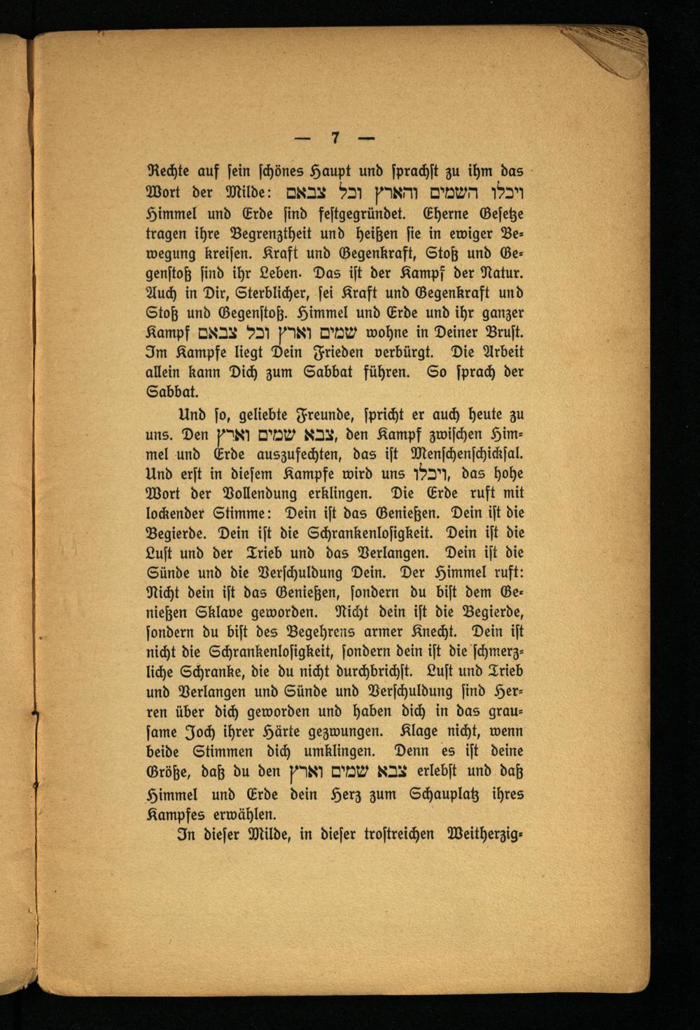 Fünf Reden gehalten am Versöhnungstage und am Schlußfeste des Jahres 5673 in der Gemeinde-Synagoge am Börneplatz / von Dr. N.A. Nobel, Rabbiner der Israelit. Gemeinde zu Frankfurt a.M. ; herausgegeben vom Vorstand der Isr. Gemeinde zum Besten der Rabbinischen Lehranstalt