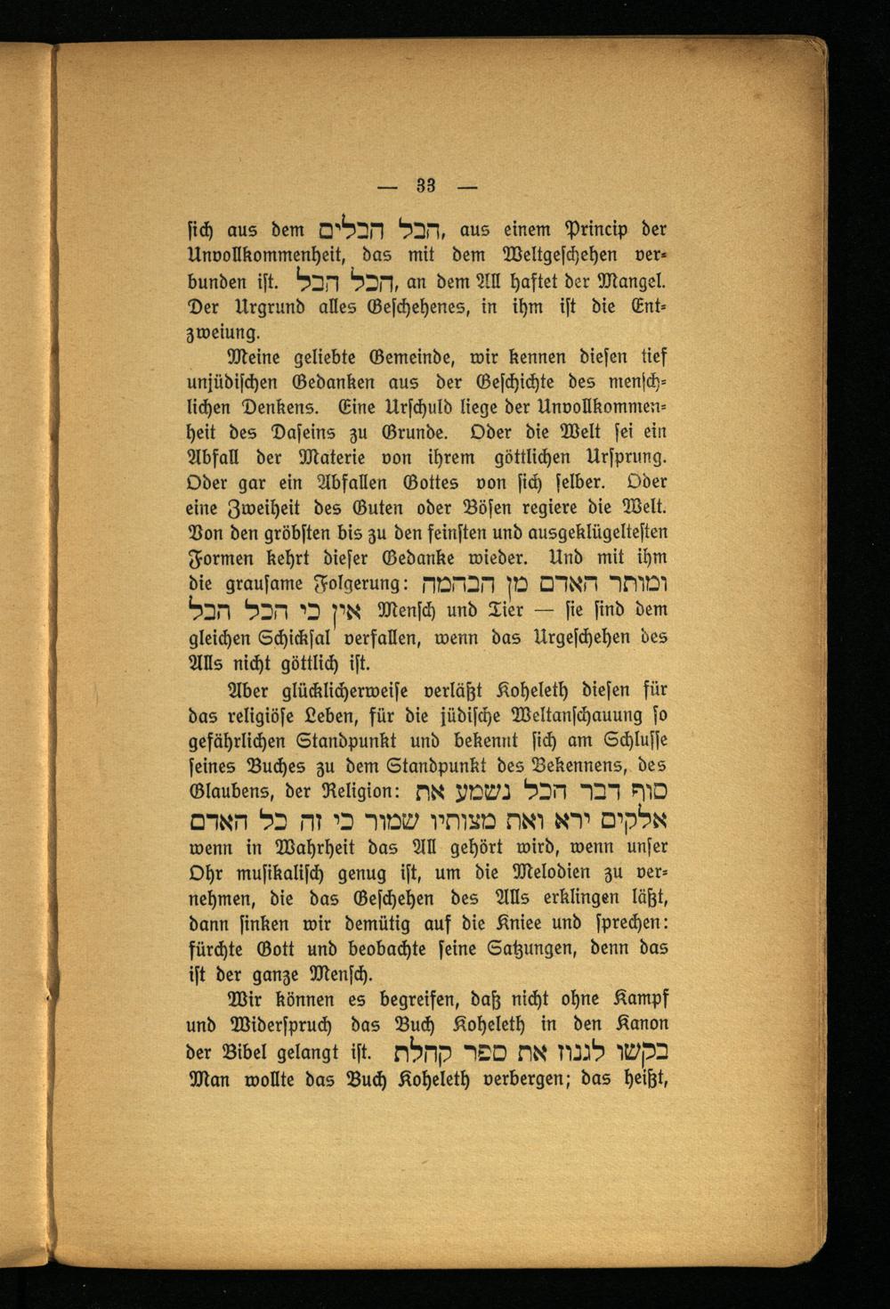 Fünf Reden gehalten am Versöhnungstage und am Schlußfeste des Jahres 5673 in der Gemeinde-Synagoge am Börneplatz / von Dr. N.A. Nobel, Rabbiner der Israelit. Gemeinde zu Frankfurt a.M. ; herausgegeben vom Vorstand der Isr. Gemeinde zum Besten der Rabbinischen Lehranstalt