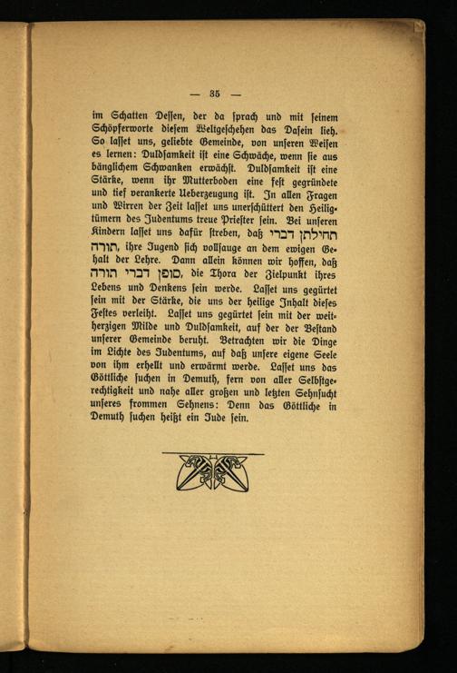 Fünf Reden gehalten am Versöhnungstage und am Schlußfeste des Jahres 5673 in der Gemeinde-Synagoge am Börneplatz / von Dr. N.A. Nobel, Rabbiner der Israelit. Gemeinde zu Frankfurt a.M. ; herausgegeben vom Vorstand der Isr. Gemeinde zum Besten der Rabbinischen Lehranstalt