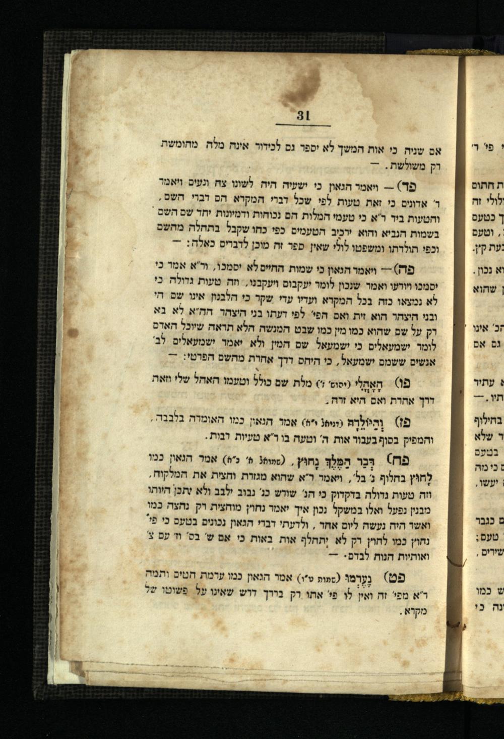 Sefer Śefat yeter / le-ha-hakham R. Avraham ben ʿEzra, ḥibro be-ʿir Luḳah le-hatsil Rabenu Seʿadyah Gaʾon be-ferushaṿ min ha-haśagot she-hiśig alaṿ R. Adonim ha-Leṿi. U-ṿe-rosh ha-sefer devar el ha-ḳore meʾet Meʾir ha-Leṿi Leṭeris ... ṿe-hotsataṿ le-or ani ha-tsaʿir Mordekhai Laib b.R. Mosheh Bislikhes mi-Brodiספר שפת יתר / להחכם ר׳ אברהם בן עזרא, חברו בעיר לוקה, להציל רבינו סעדיה גאון בפירושיו מן ההשגות שהשיג עליו ר׳ אדונים הלוי. ובראש הספר דבר אל הקורא מאת מאיר הלוי לעטעריס ... והוצאתיו לאור אני הצעיר מרדכי ליב ב״ר משה ביסליכיס מבראדי