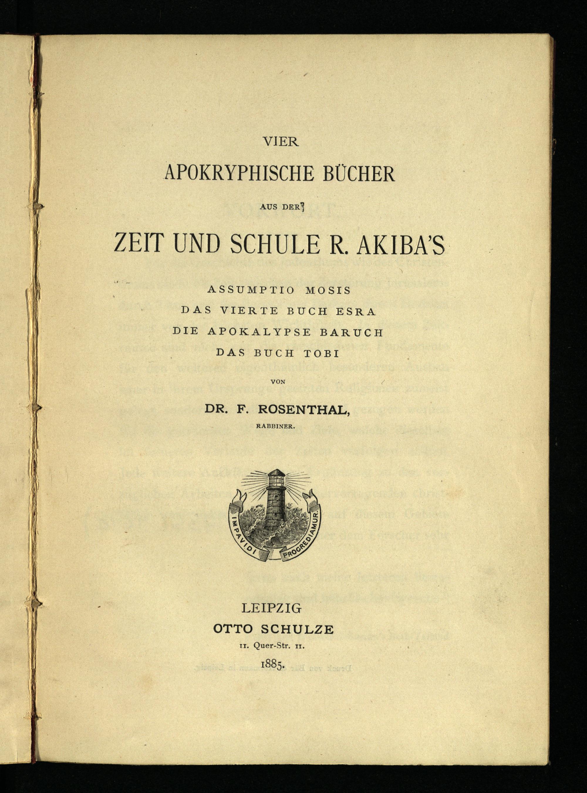 Vier apokryphische Bücher aus der Zeit und Schule des R. Akiba / F. Rosenthal [Hrsg.]
