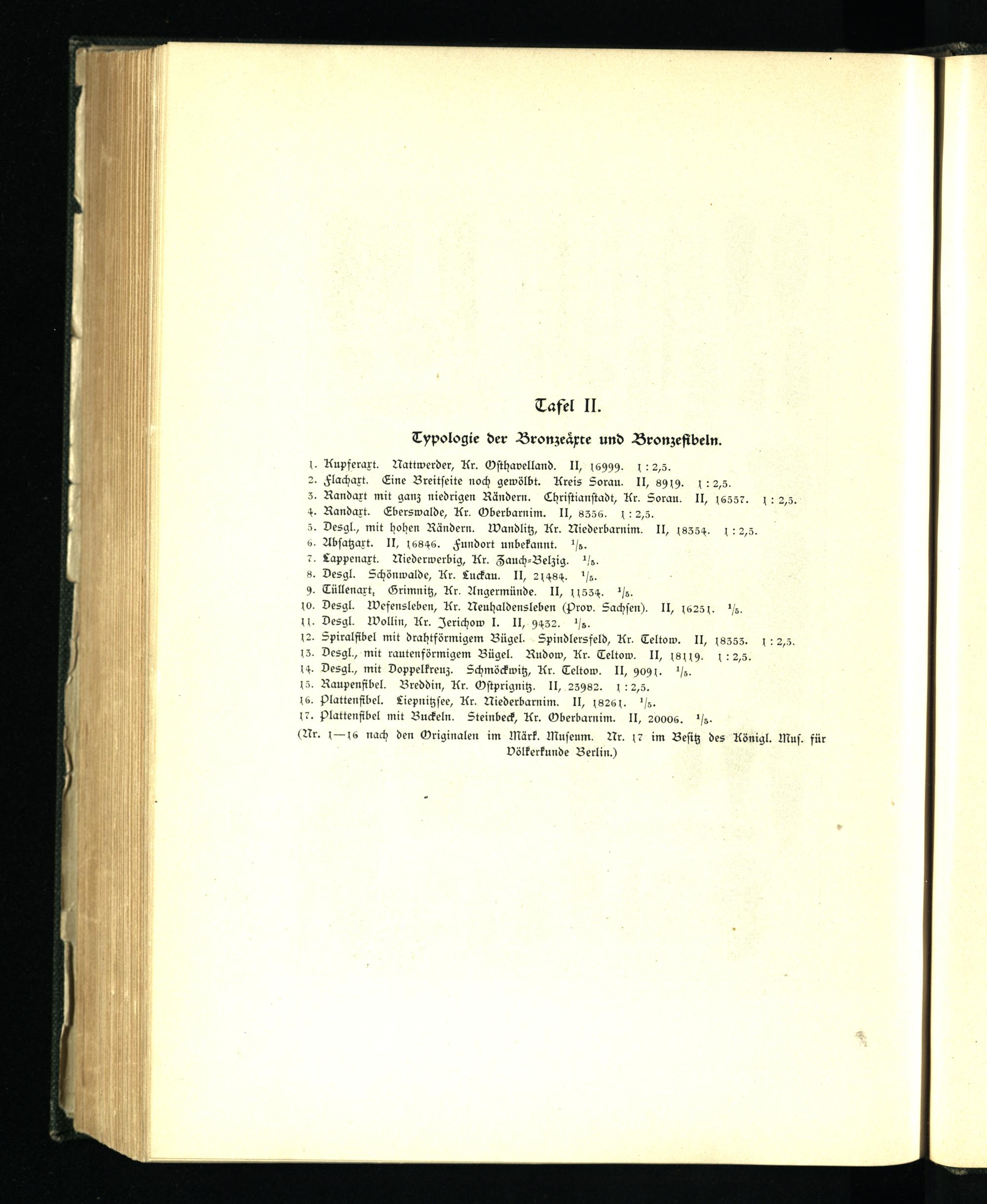Tafel II. Typologie der Bronzeäxte und Bronzefibeln.
