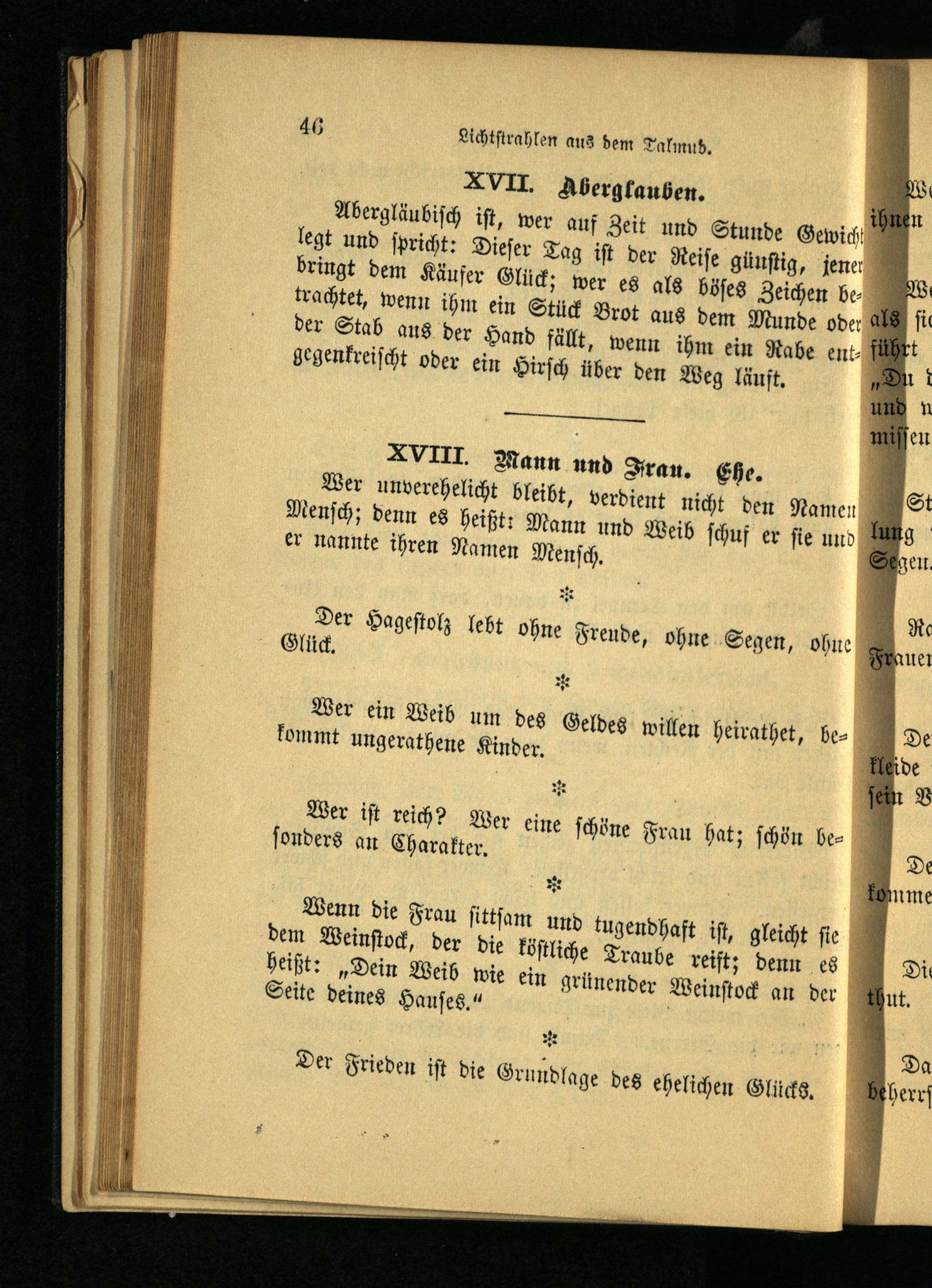 XVII. Aberglauben; XVIII. Mann und Frau, Ehe