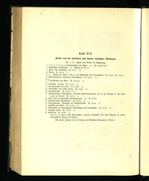 Tafel XVI. Funde aus der mittleren und späten römischen Kaiserzeit.