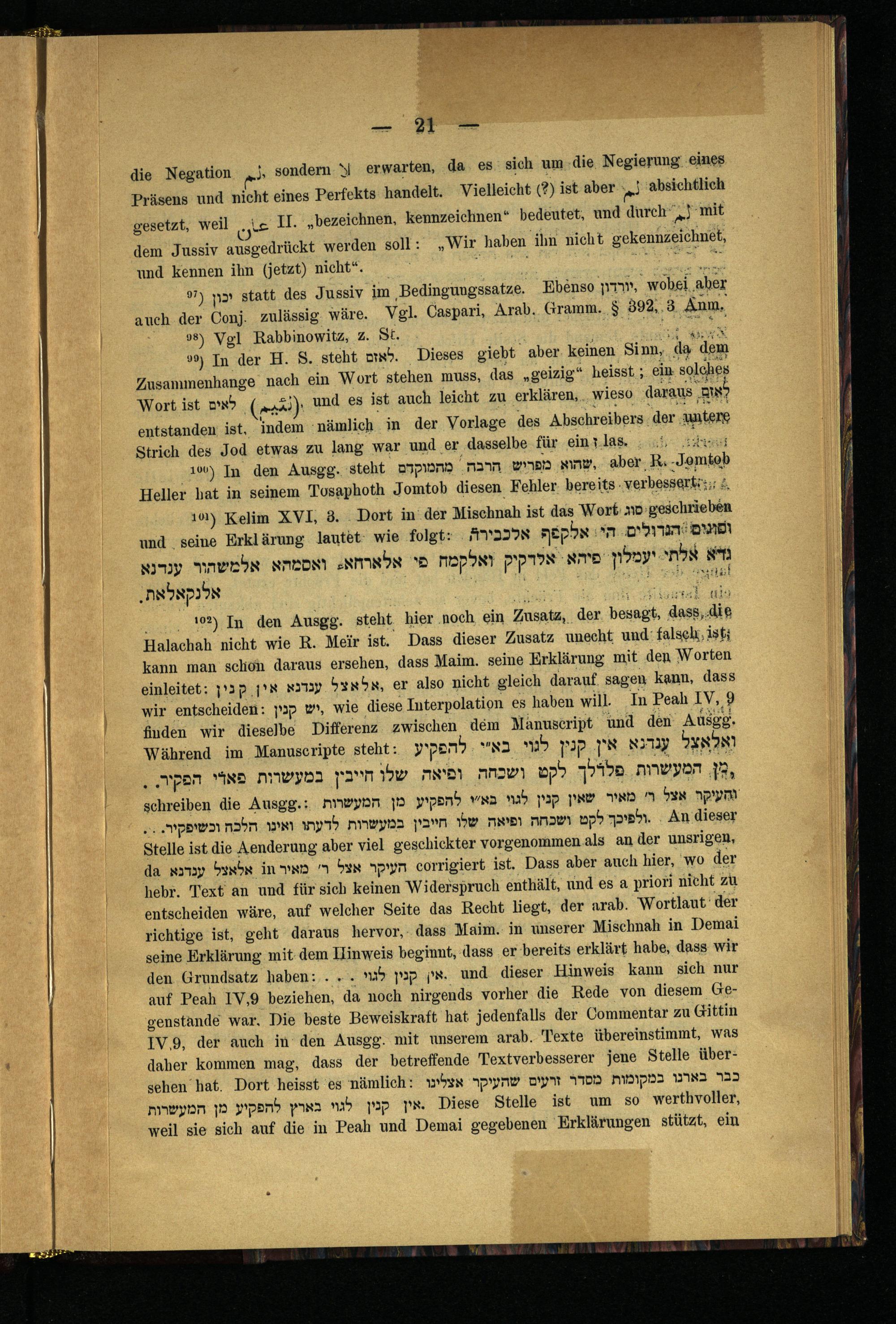 Der Commentar des Maimonides zum Tractat Demai : Arabischer Text mit hebräischer Uebersetzung und Anmerkungen / Joseph Zivi