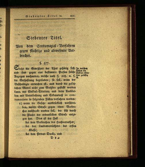 Siebenter Titel. Von dem Contumazial-Verfahren gegen flüchtige und abwesende Ver...