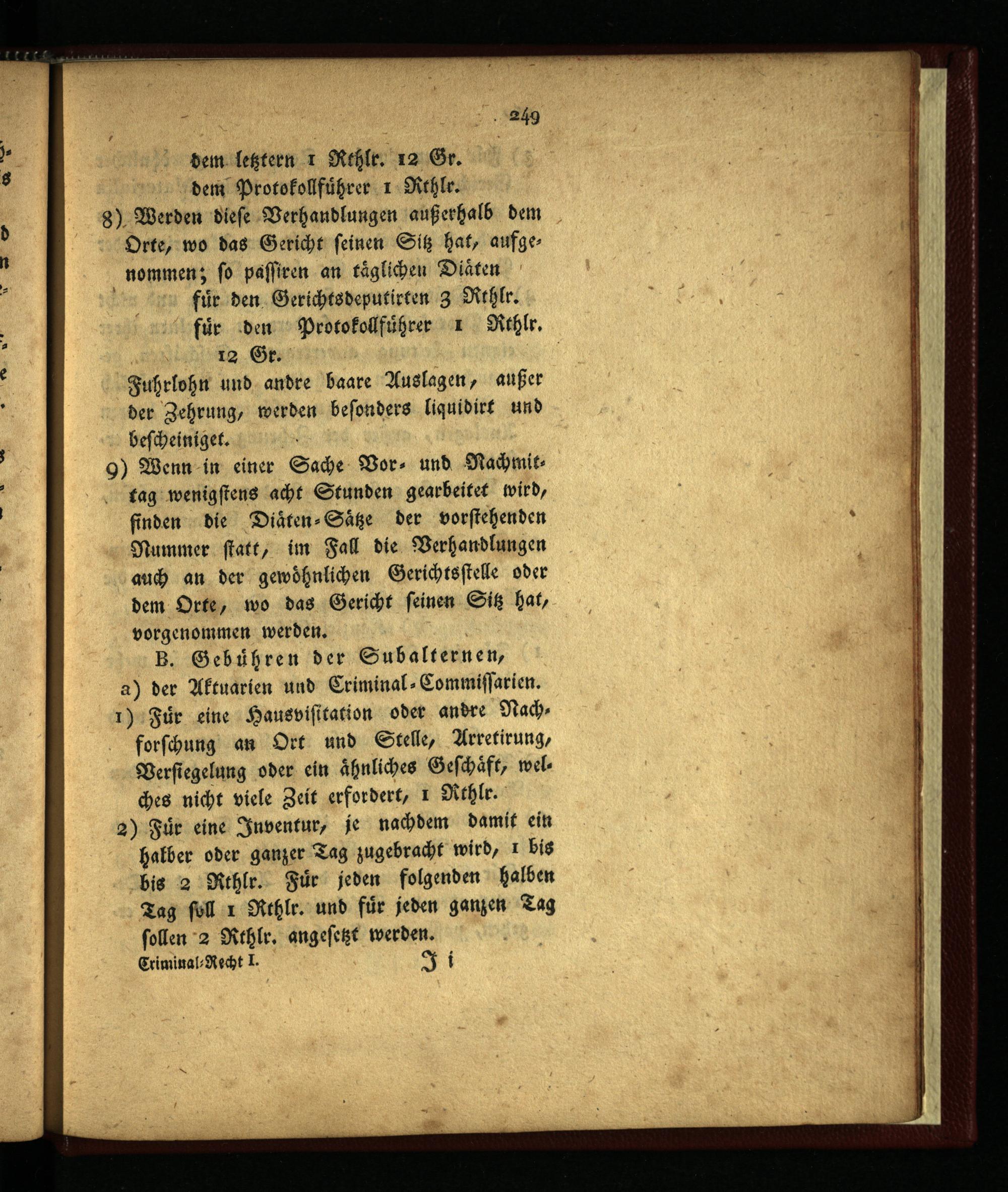Gebühren-Taxe in Criminal-Untersuchungssachen für sämmtliche Ober- und Untergeri...