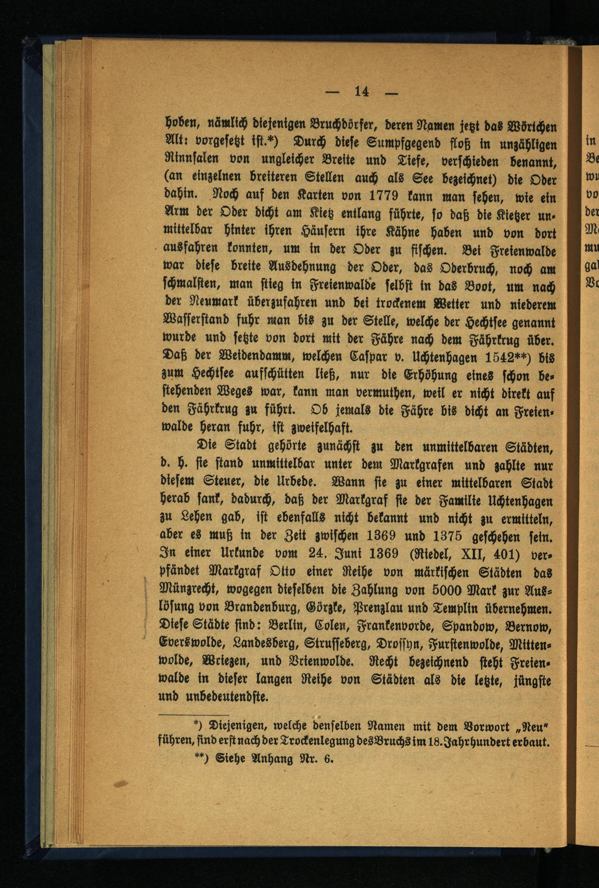 1. Kapitel. Früheste Zeiiten von Freienwalde