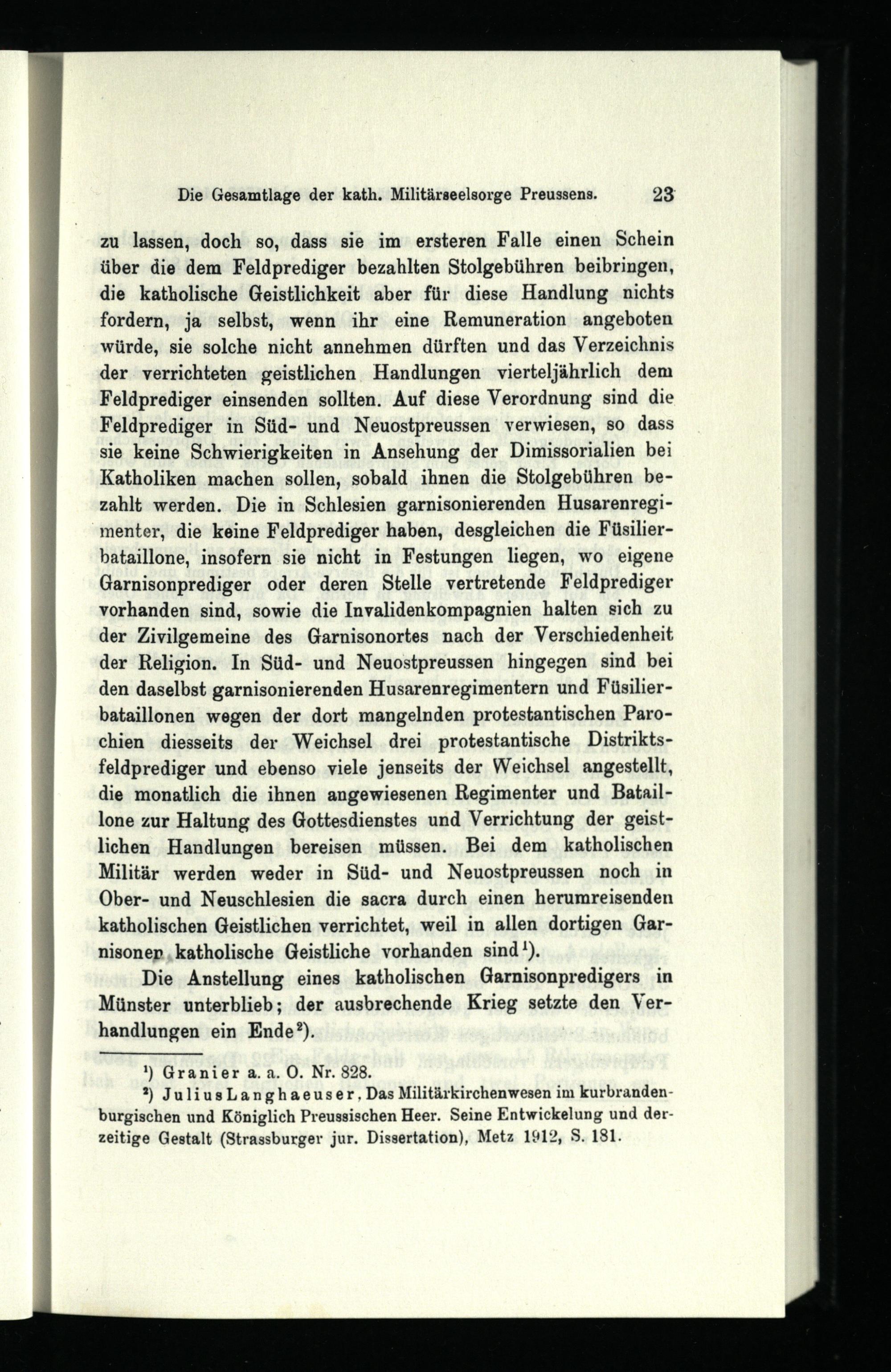 Zweites Kapitel. Die Entwicklung der katholischen Militärseelsorge in Preussen vom Jahre 1806 bis zum Erlass des Königlich Preussischen Militärkirchenreglements vom 28. März 1811.