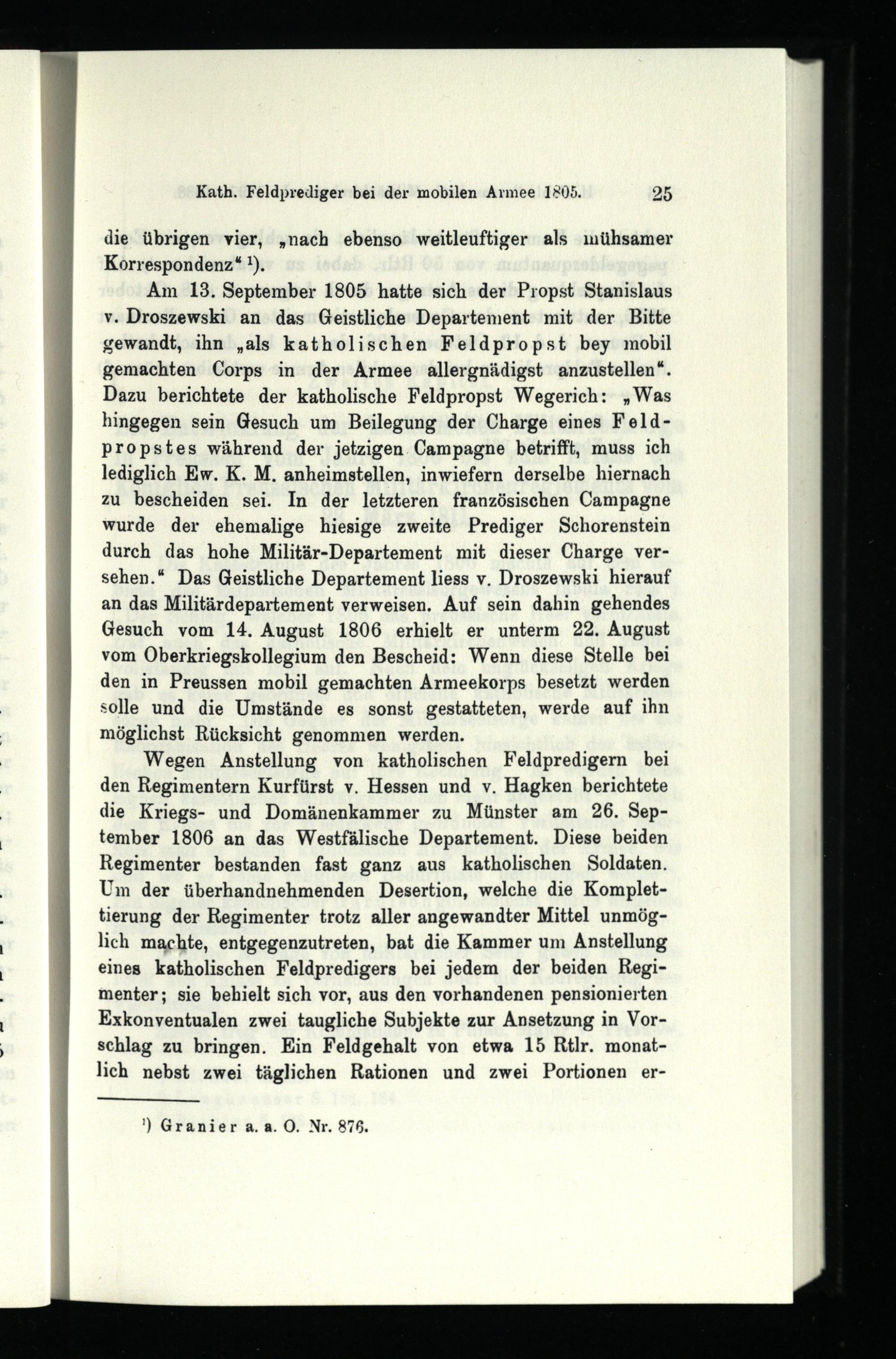 Siebentes Kapitel. Der Fall Namszanowski und die Aufhebung der katholischen Feldpropstei.