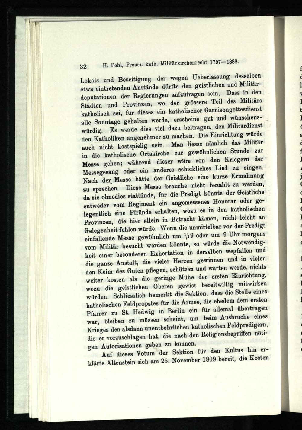 Die katholische Militärseelsorge Preußens : 1797 - 1888 ; Studien zur Geschichte des deutschen Militärkirchenrechts / von Heinrich Pohl