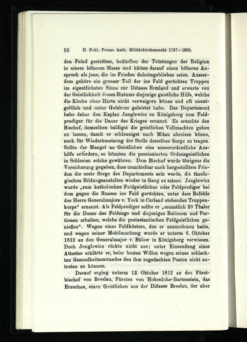Die katholische Militärseelsorge Preußens : 1797 - 1888 ; Studien zur Geschichte des deutschen Militärkirchenrechts / von Heinrich Pohl