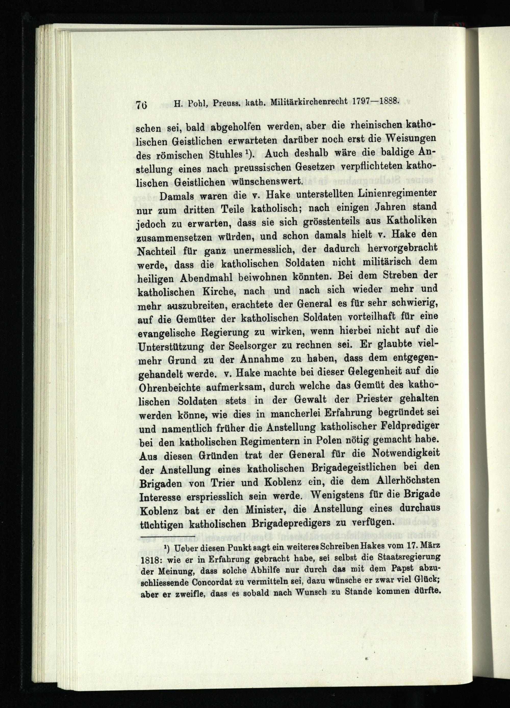Die katholische Militärseelsorge Preußens : 1797 - 1888 ; Studien zur Geschichte des deutschen Militärkirchenrechts / von Heinrich Pohl