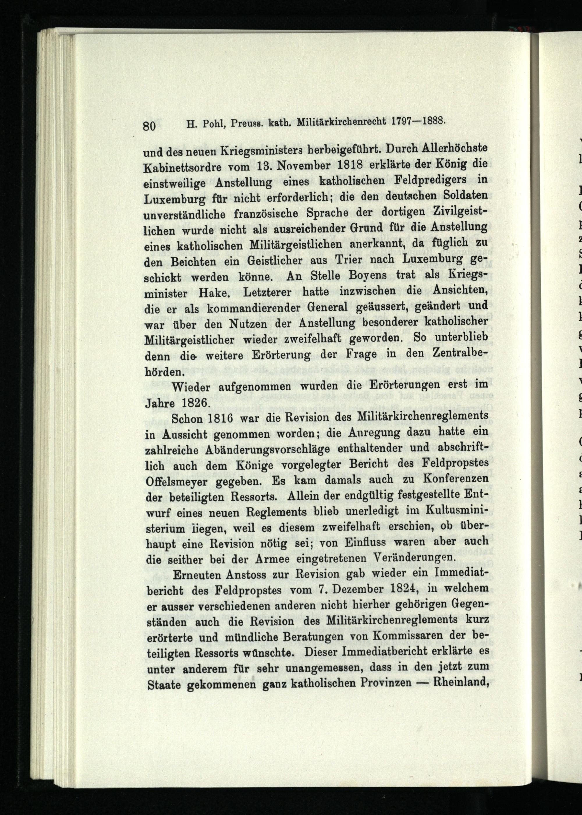 Die katholische Militärseelsorge Preußens : 1797 - 1888 ; Studien zur Geschichte des deutschen Militärkirchenrechts / von Heinrich Pohl