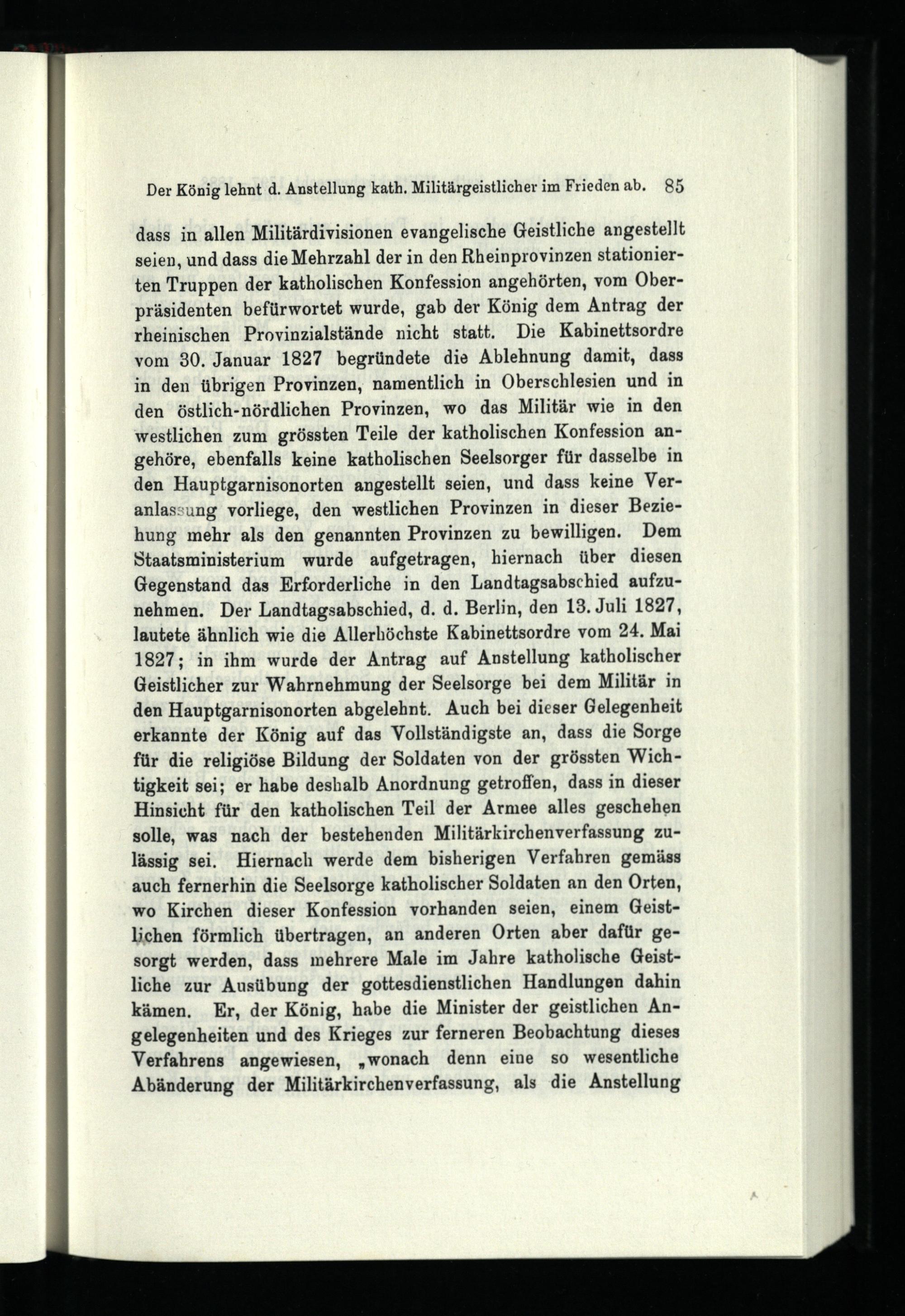Achtes Kapitel. Die katholische Militärseelsorge in den Jahren 1873 - 1888 und die Wiederbesetzung der Stelle eines katholischen Feldpropstes.