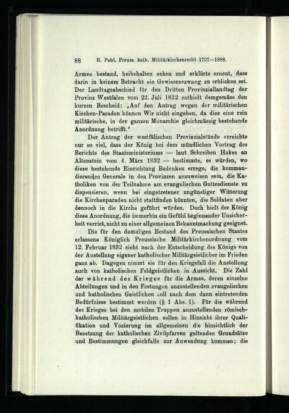 Die katholische Militärseelsorge Preußens : 1797 - 1888 ; Studien zur Geschichte des deutschen Militärkirchenrechts / von Heinrich Pohl