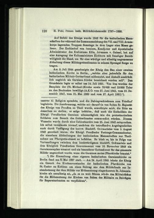 Die katholische Militärseelsorge Preußens : 1797 - 1888 ; Studien zur Geschichte des deutschen Militärkirchenrechts / von Heinrich Pohl