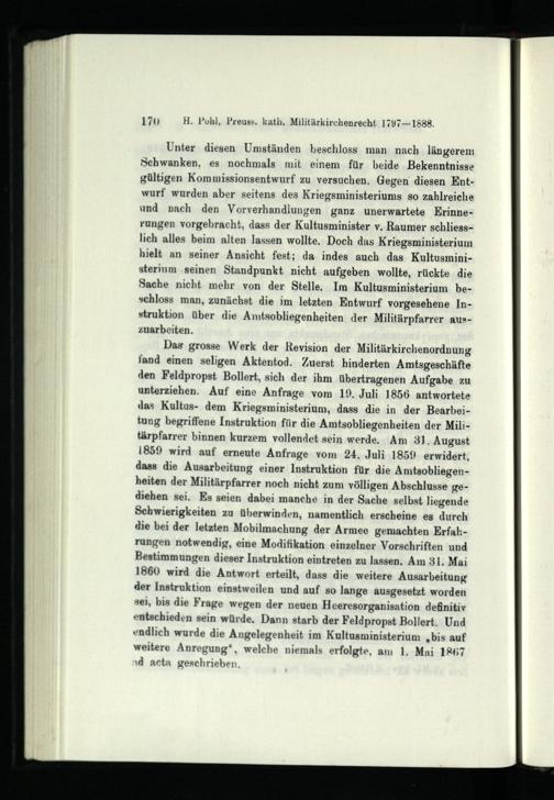 Achtes Kapitel. Die katholische Militärseelsorge in den Jahren 1873 - 1888 und die Wiederbesetzung der Stelle eines katholischen Feldpropstes.