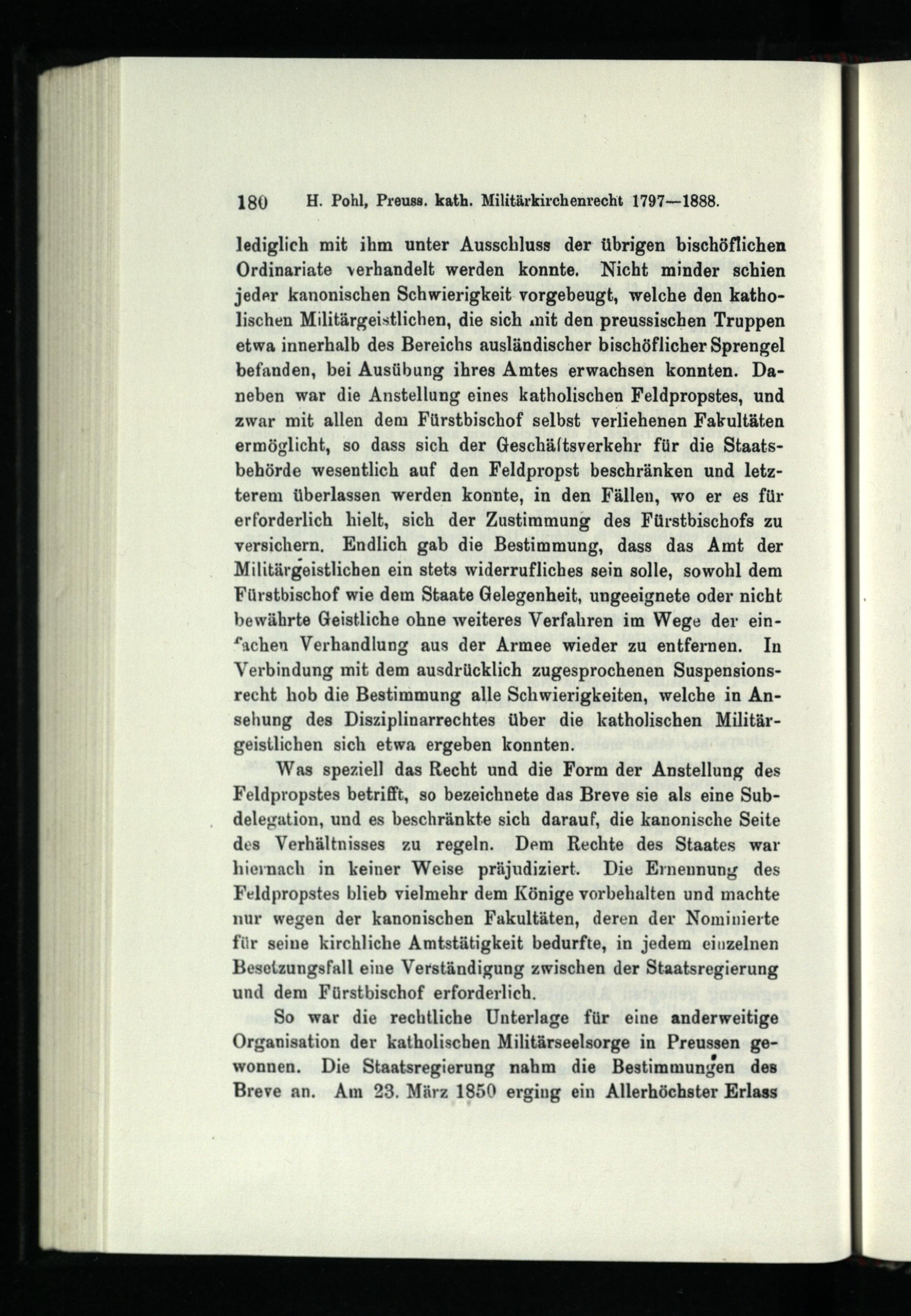 Die katholische Militärseelsorge Preußens : 1797 - 1888 ; Studien zur Geschichte des deutschen Militärkirchenrechts / von Heinrich Pohl