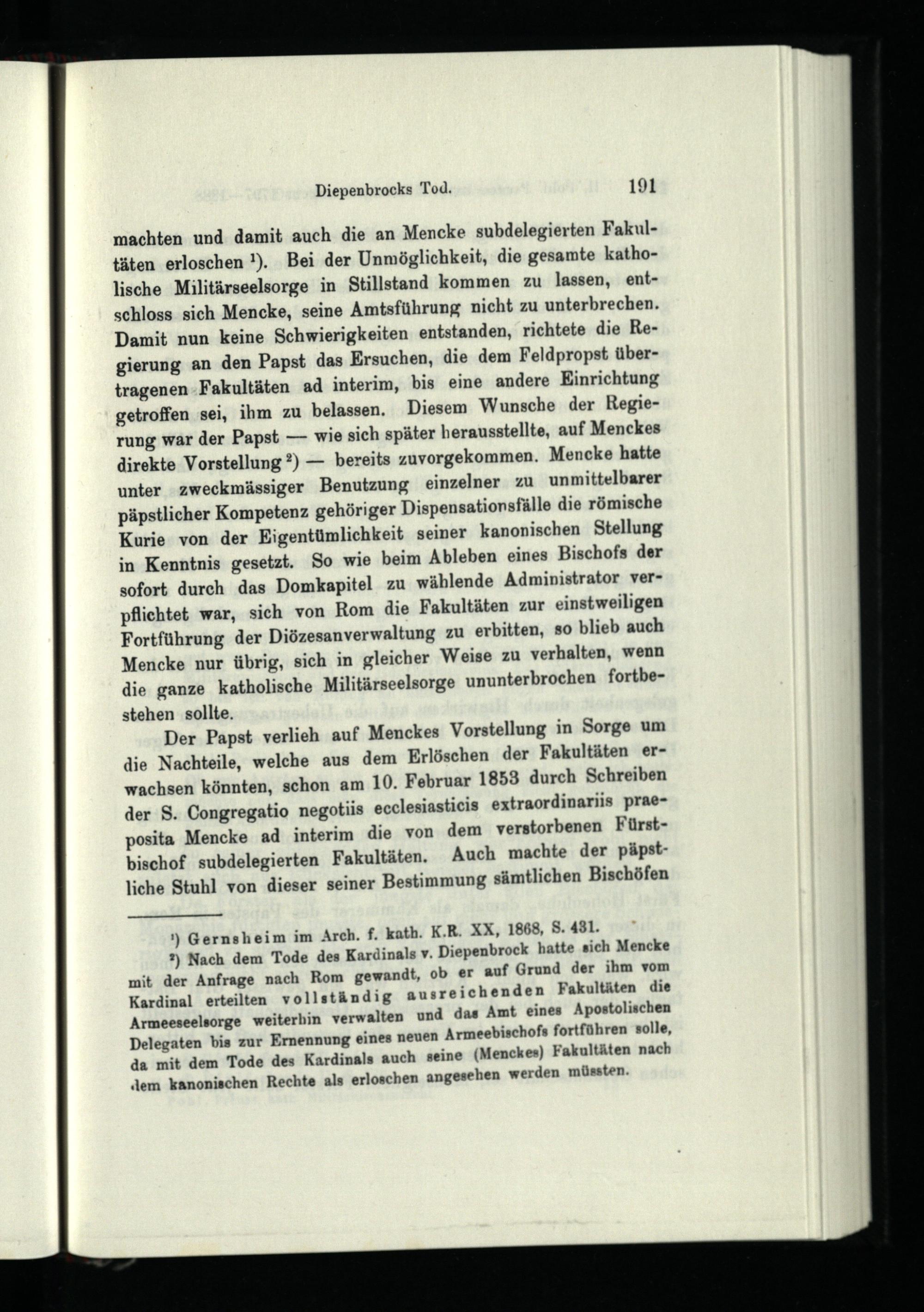 Achtes Kapitel. Die katholische Militärseelsorge in den Jahren 1873 - 1888 und die Wiederbesetzung der Stelle eines katholischen Feldpropstes.