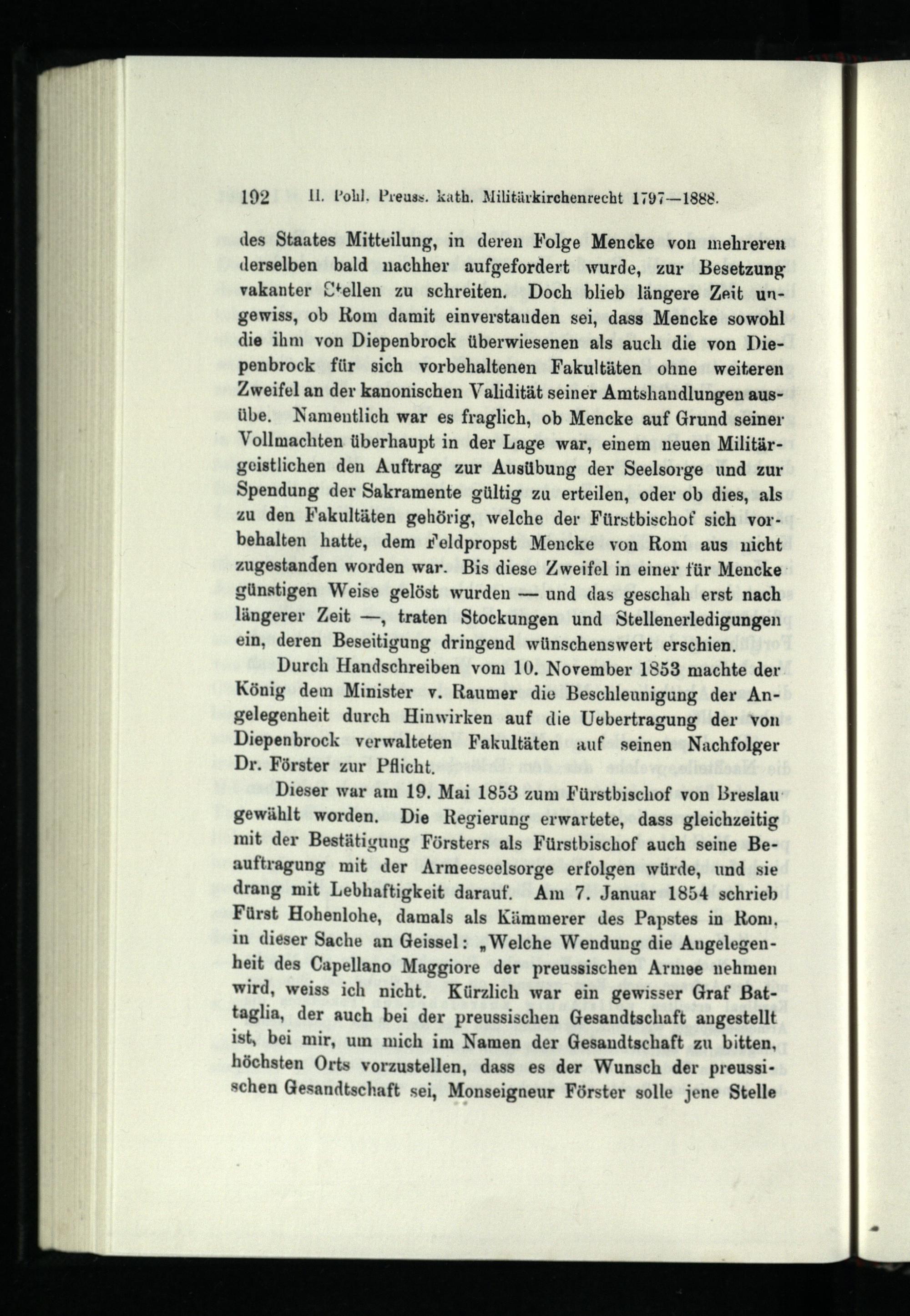 Achtes Kapitel. Die katholische Militärseelsorge in den Jahren 1873 - 1888 und die Wiederbesetzung der Stelle eines katholischen Feldpropstes.