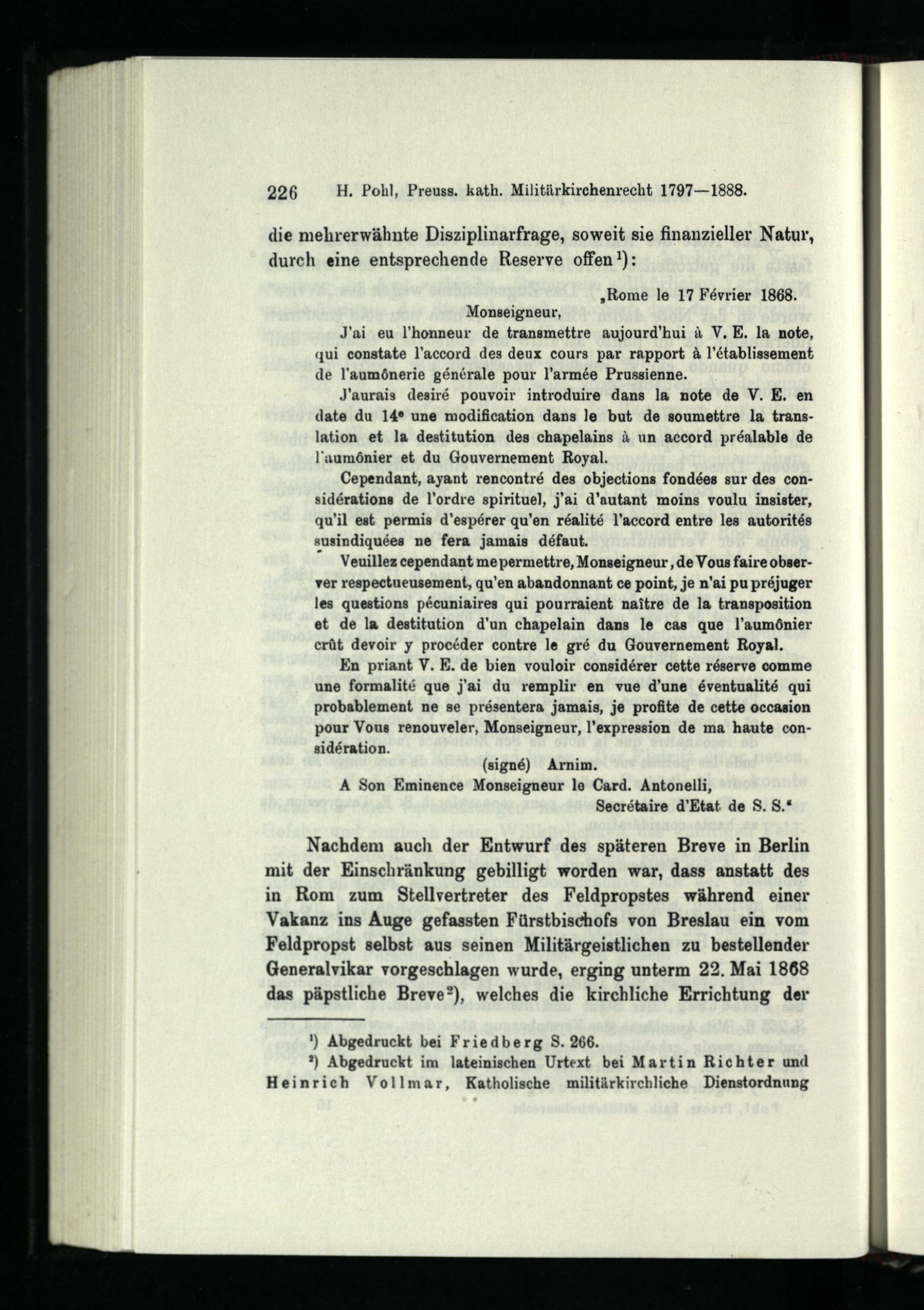 Die katholische Militärseelsorge Preußens : 1797 - 1888 ; Studien zur Geschichte des deutschen Militärkirchenrechts / von Heinrich Pohl