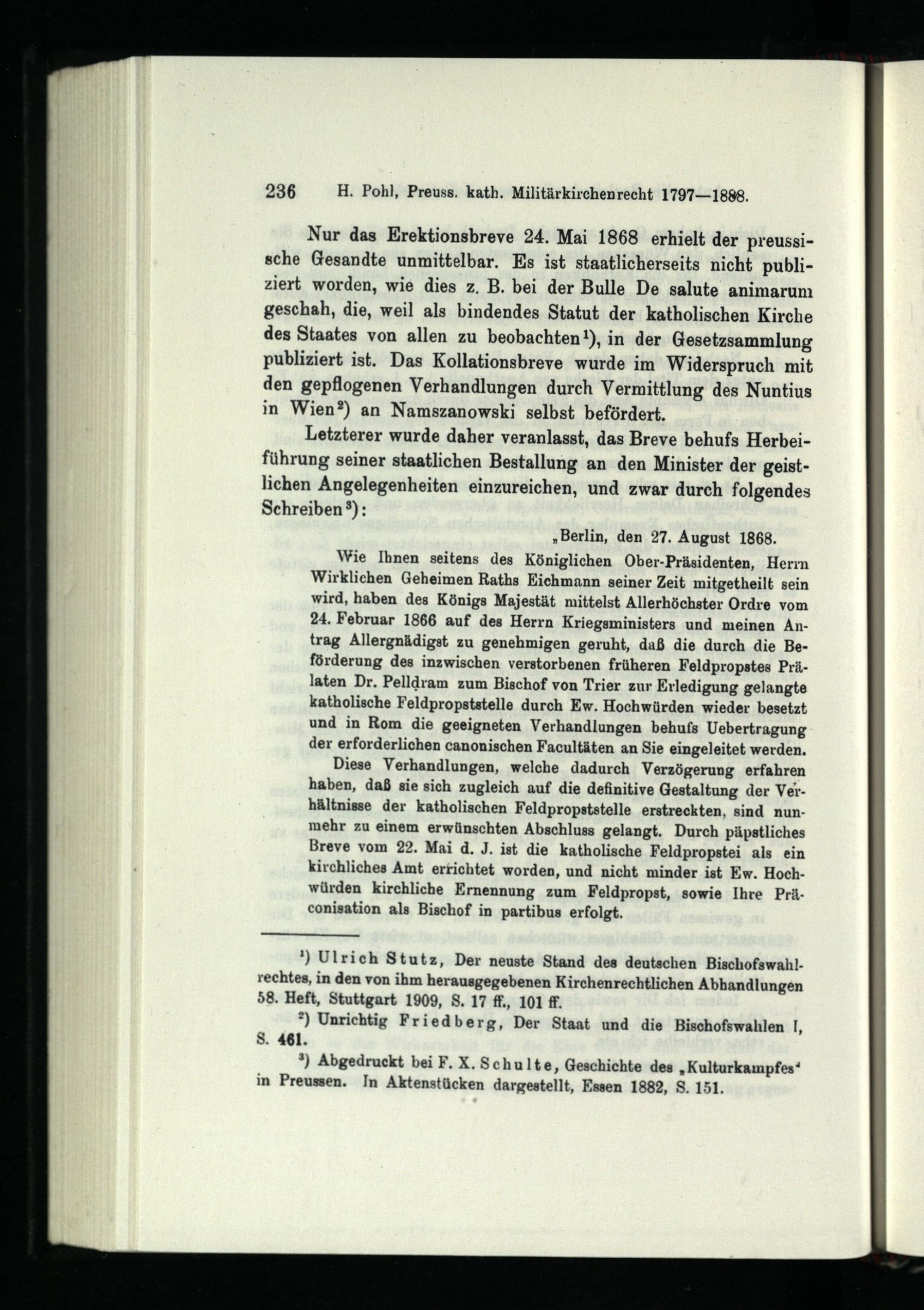 Die katholische Militärseelsorge Preußens : 1797 - 1888 ; Studien zur Geschichte des deutschen Militärkirchenrechts / von Heinrich Pohl
