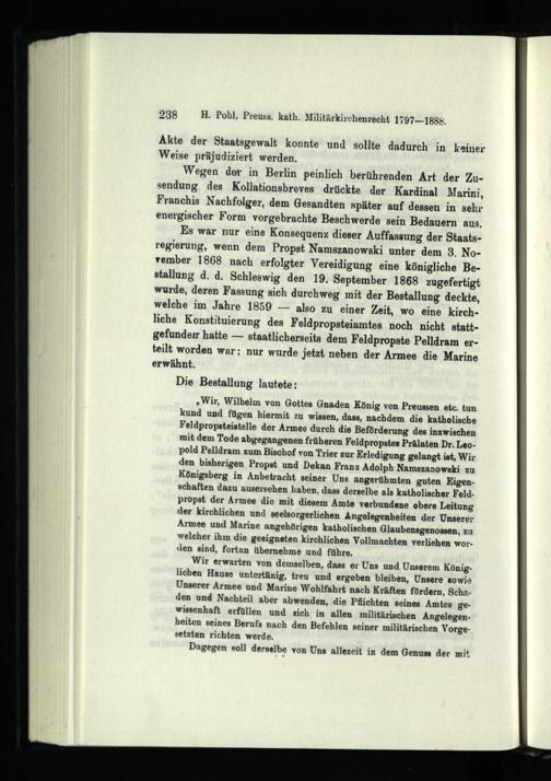 Die katholische Militärseelsorge Preußens : 1797 - 1888 ; Studien zur Geschichte des deutschen Militärkirchenrechts / von Heinrich Pohl